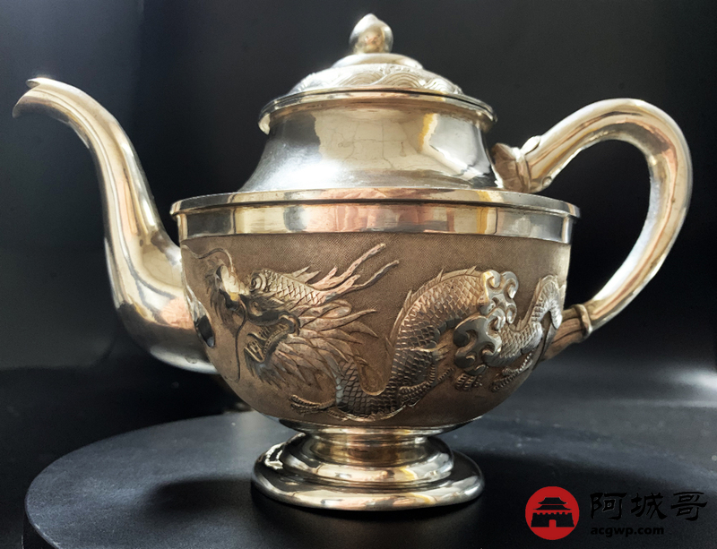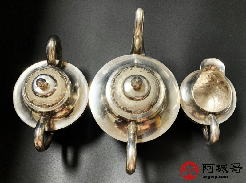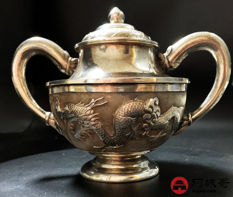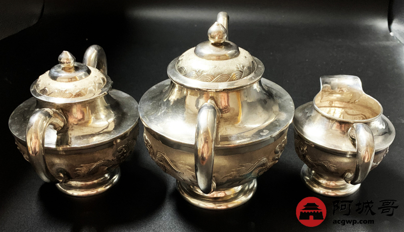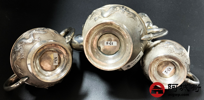Lot:3814 清末龙纹三件套,重745克。底款:天津天宝 足纹