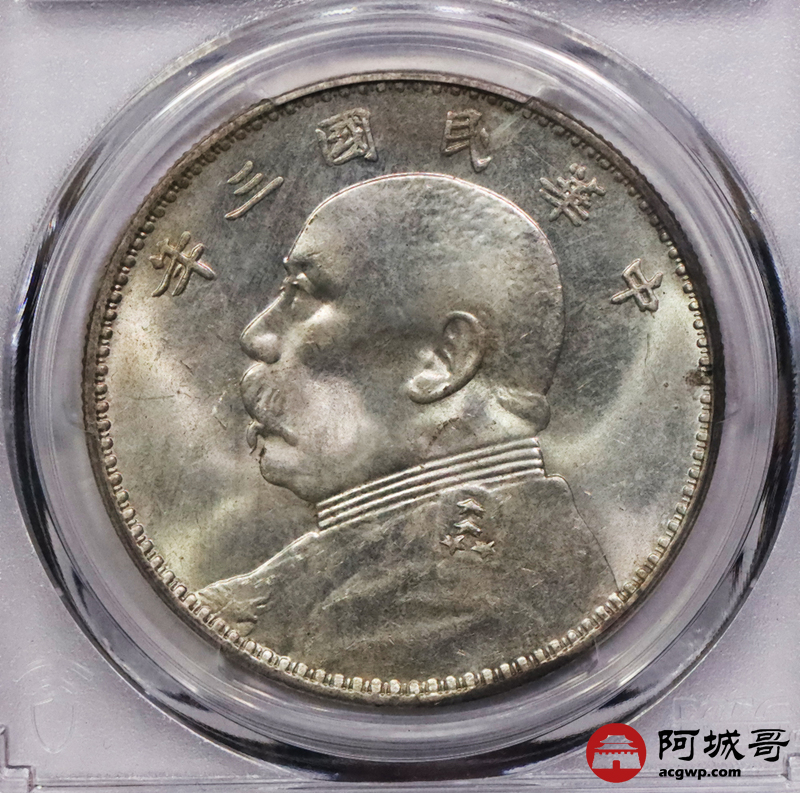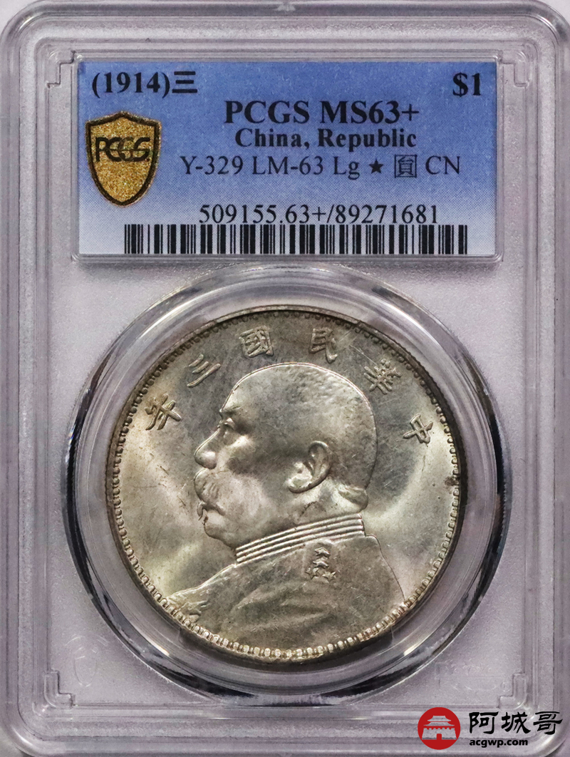 Lot:3481 1914民国三年袁世凯像壹圆银币一枚,拆卷曝光状态 PCGS MS63+