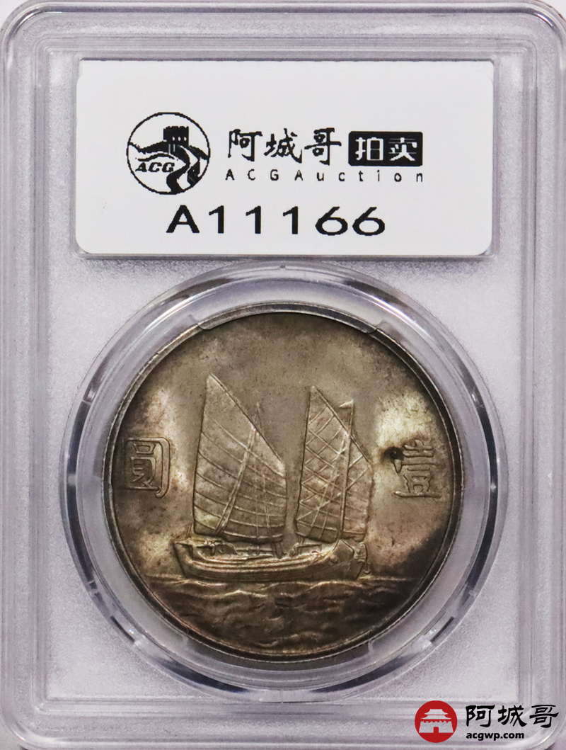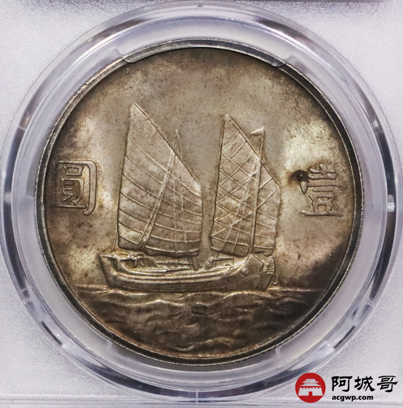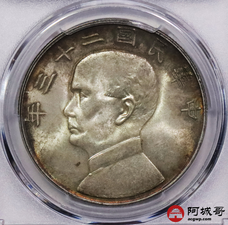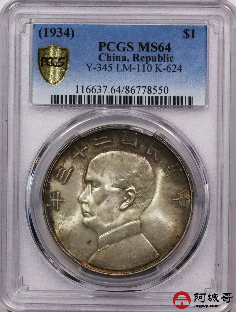 Lot:3557 1934民国二十三年孙中山像背帆船壹圆银币一枚,黄油原光五彩包浆PCGS MS64评级编号:86778550