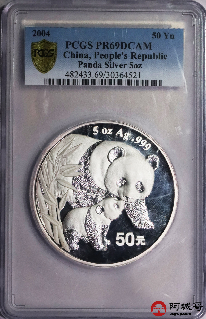 Lot:3729 2004年5盎司50元熊猫精致银币一枚 PCGS PR69DCAM 评级编号:30364521