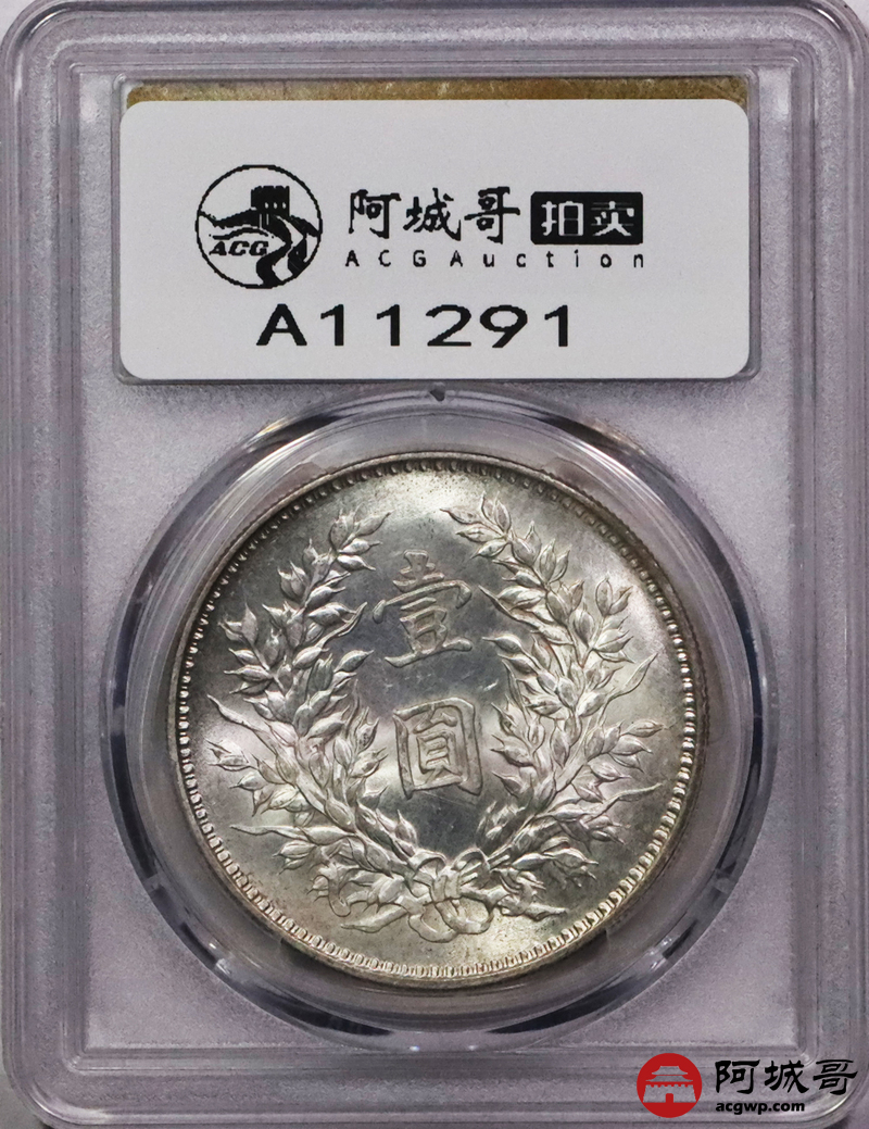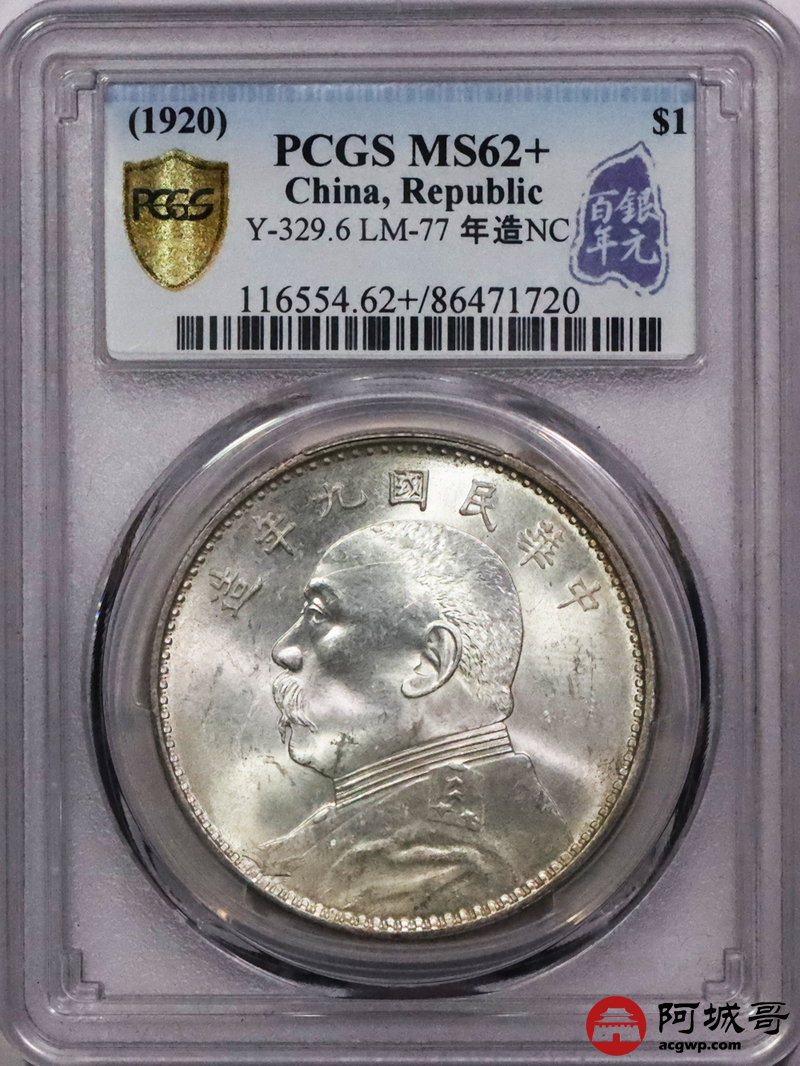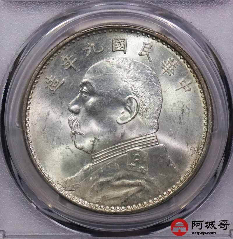 Lot:3517 1920民国九年袁世凯像壹圆银币一枚,精发版,银光皎洁 PCGS MS62+ 评级编号:86471720