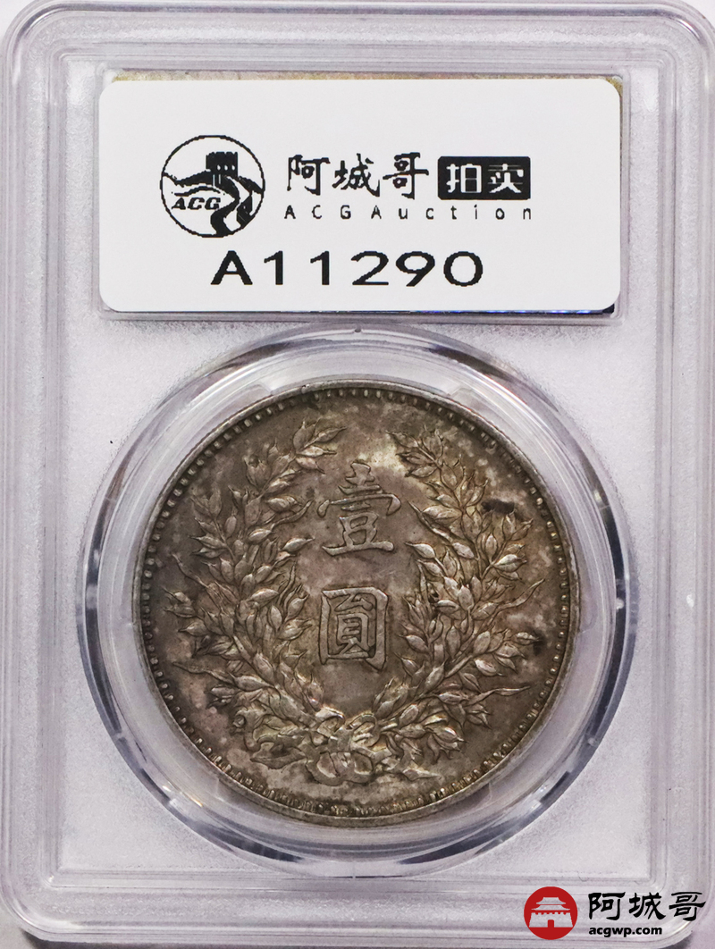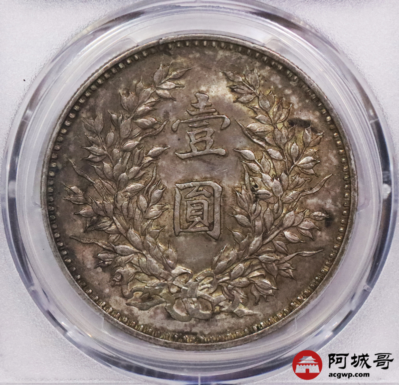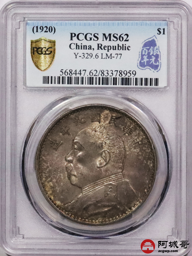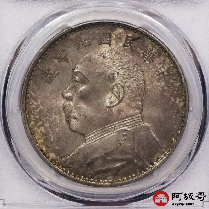 Lot:3515 1920民国九年袁世凯像壹圆银币一枚,精发版,油彩底板 PCGS MS62+ 评级编号:86471720