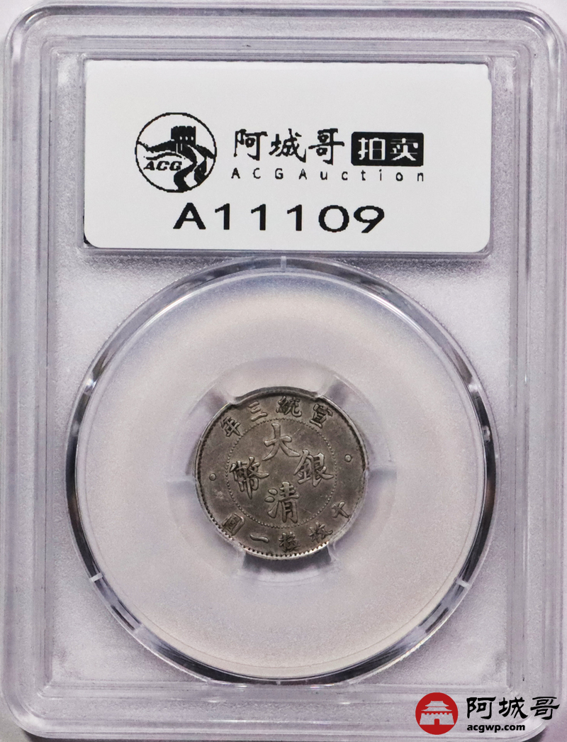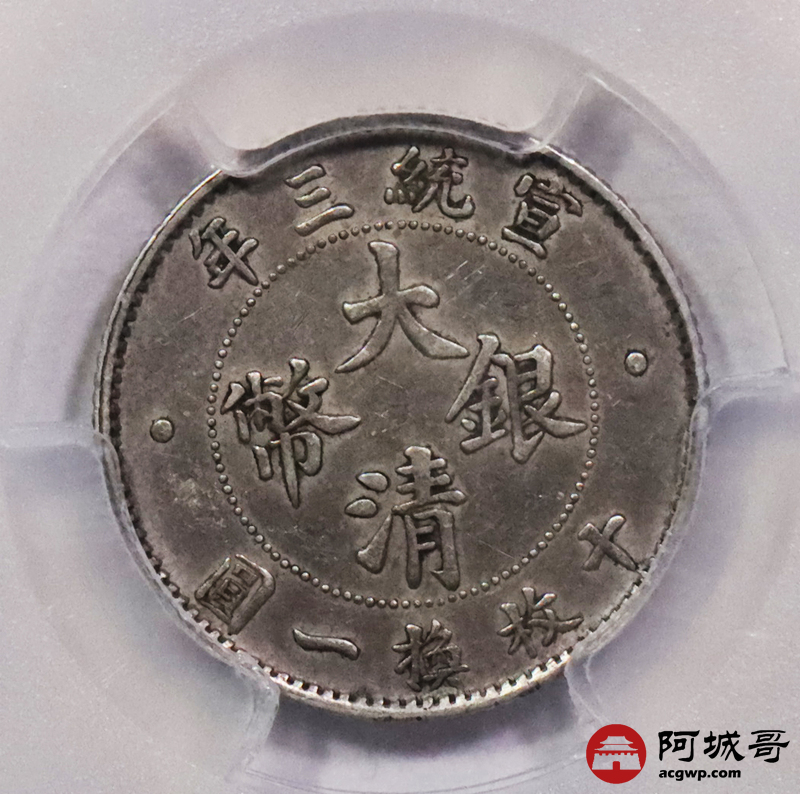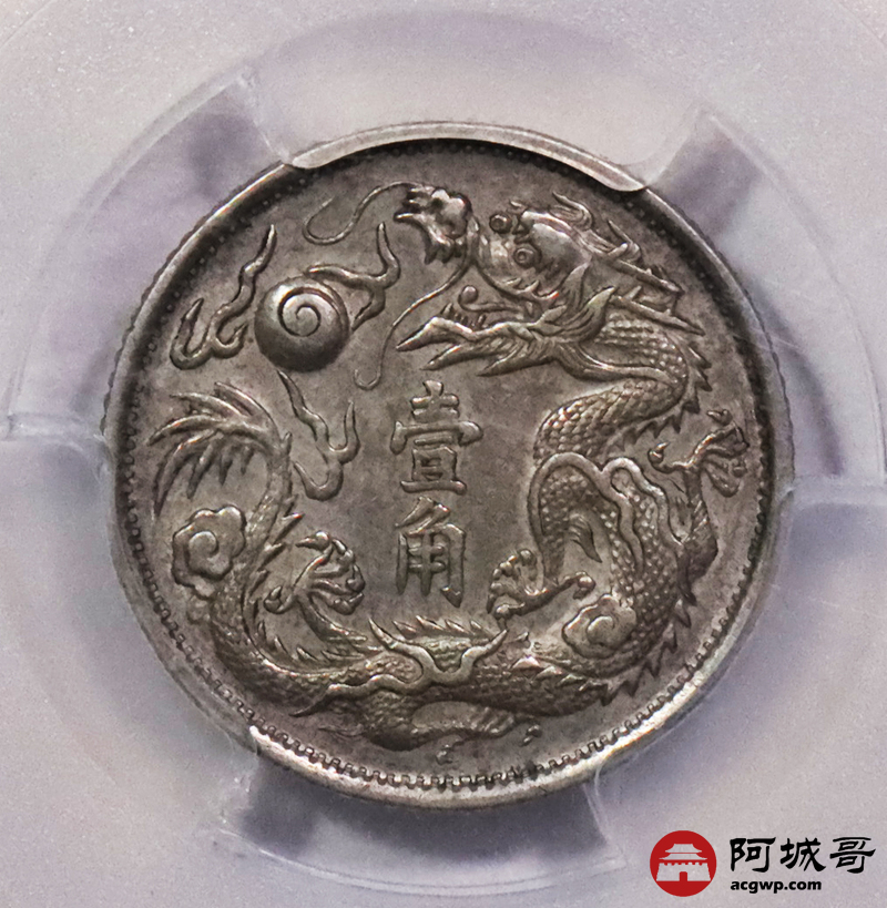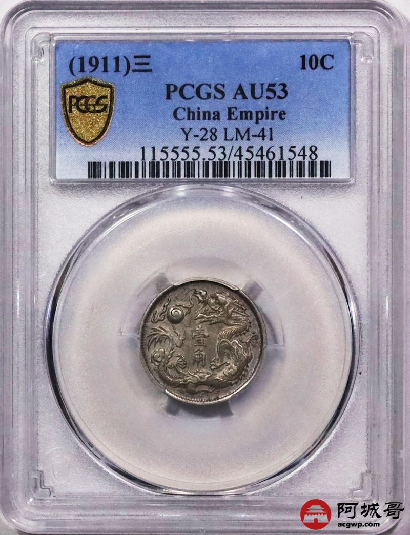 Lot:3063 1911宣统三年大清壹角银币一枚,原味底板,铸打深俊 PCGS AU53 评级编号:45461548