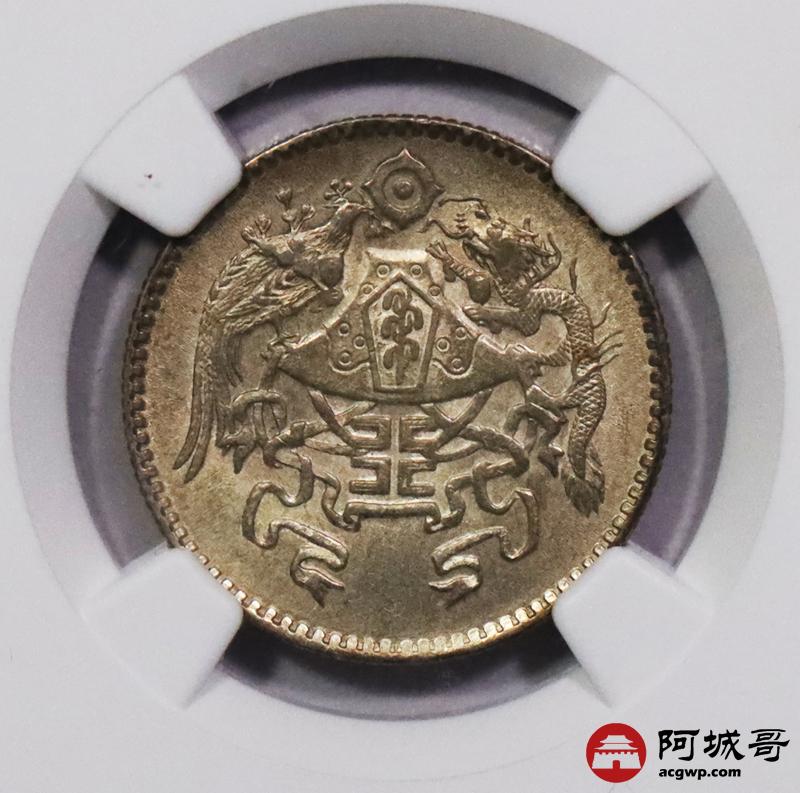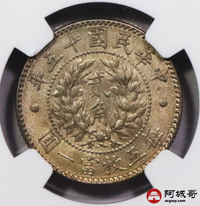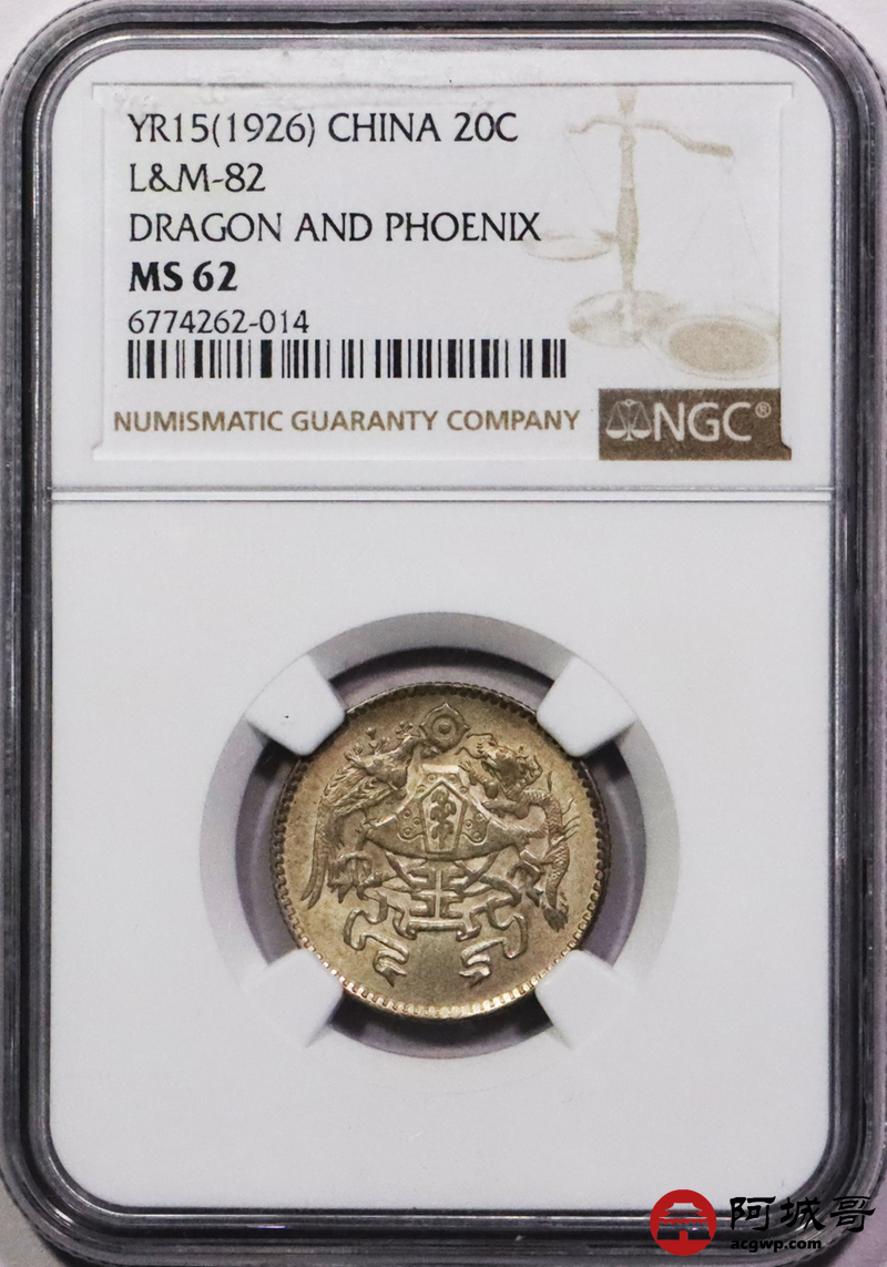 Lot:3172 1926民国十五年龙凤贰角银币一枚,黄油底板 NGC MS62 评级编号:6774262-014