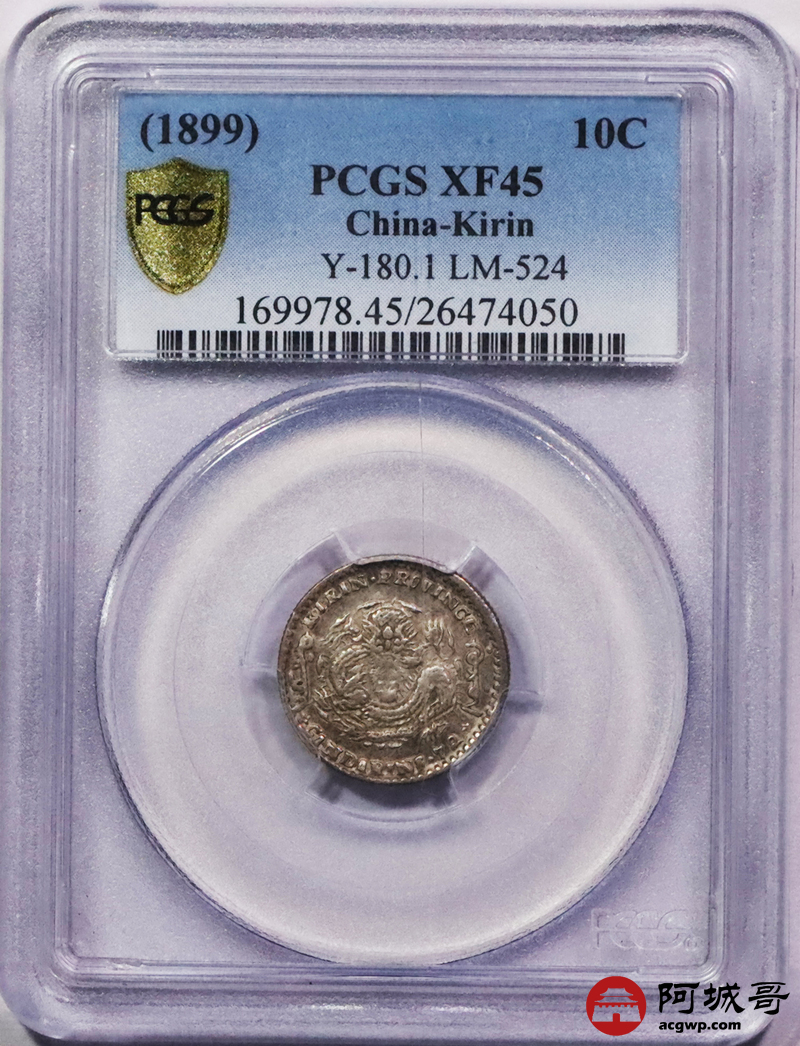 Lot:3394 1899己亥年吉林省造光绪元宝库平七分二厘银币一枚,深打原味底板 PCGS XF45 评级编号:26474050