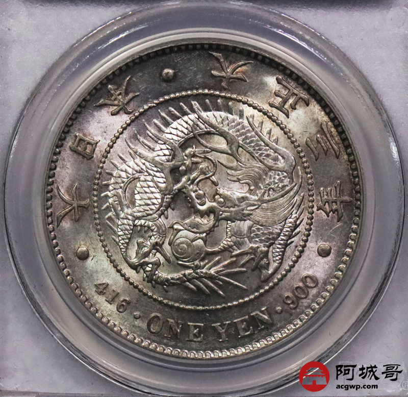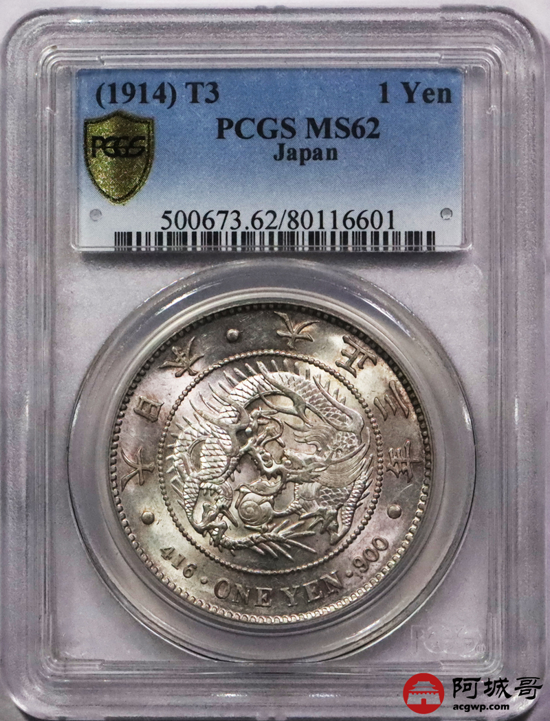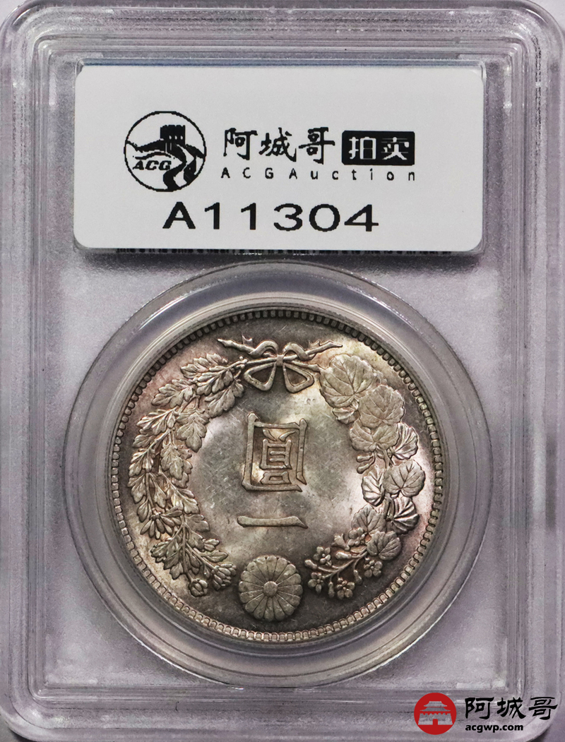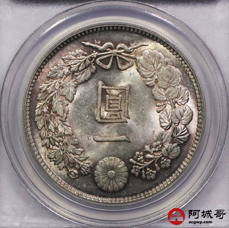 Lot:3745 1914日本大正三年一圆银币一枚,粉彩底板 PCGS MS62 评级编号:80116601