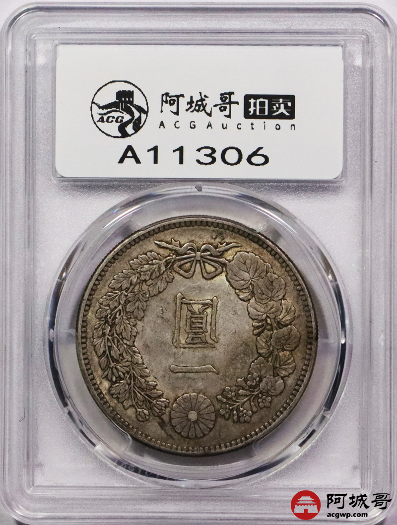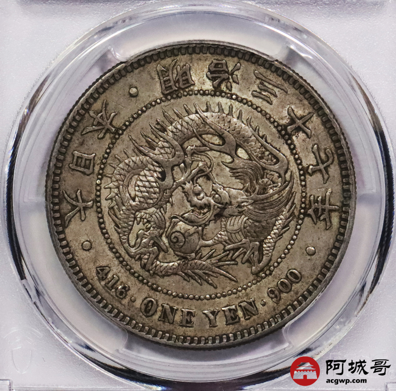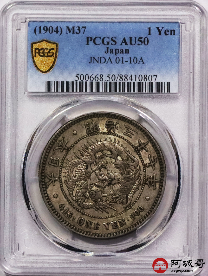 Lot:3742 1904日本明治三十七年一圆银币一枚,原味黄油底板 PCGS AU50