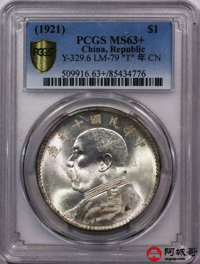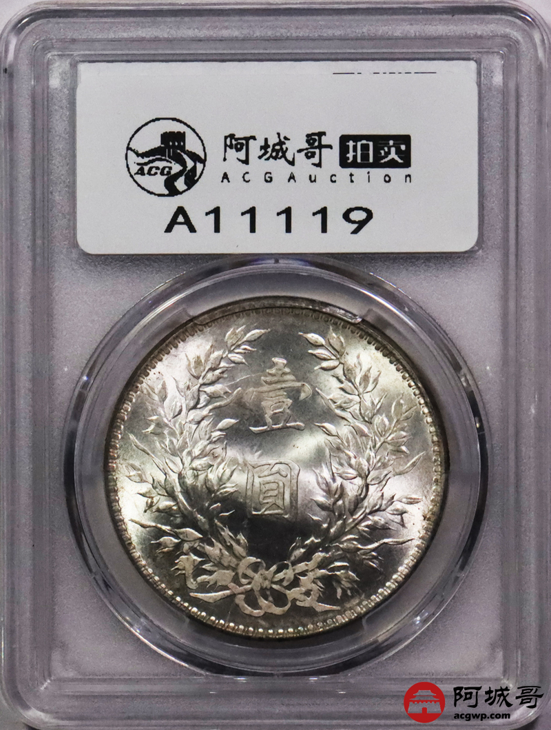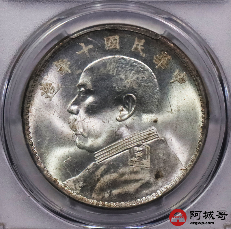Lot:3528 1921民国十年袁世凯像壹圆银币一枚,车轮曝光,银光四溢 PCGS MS63+