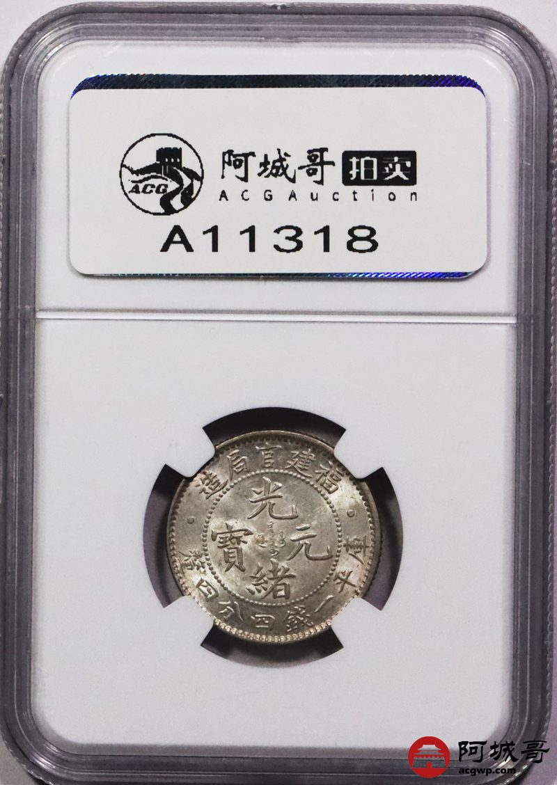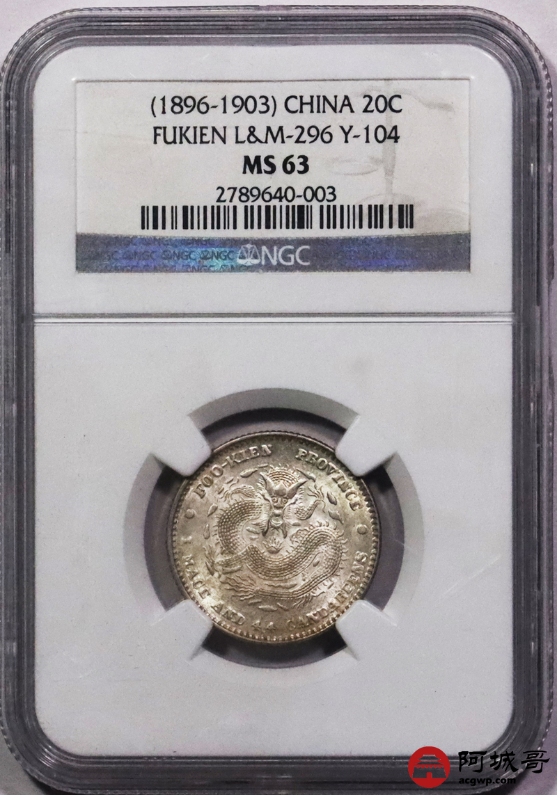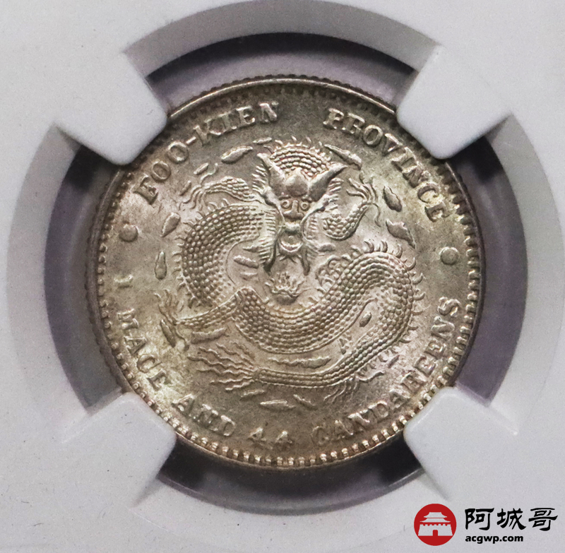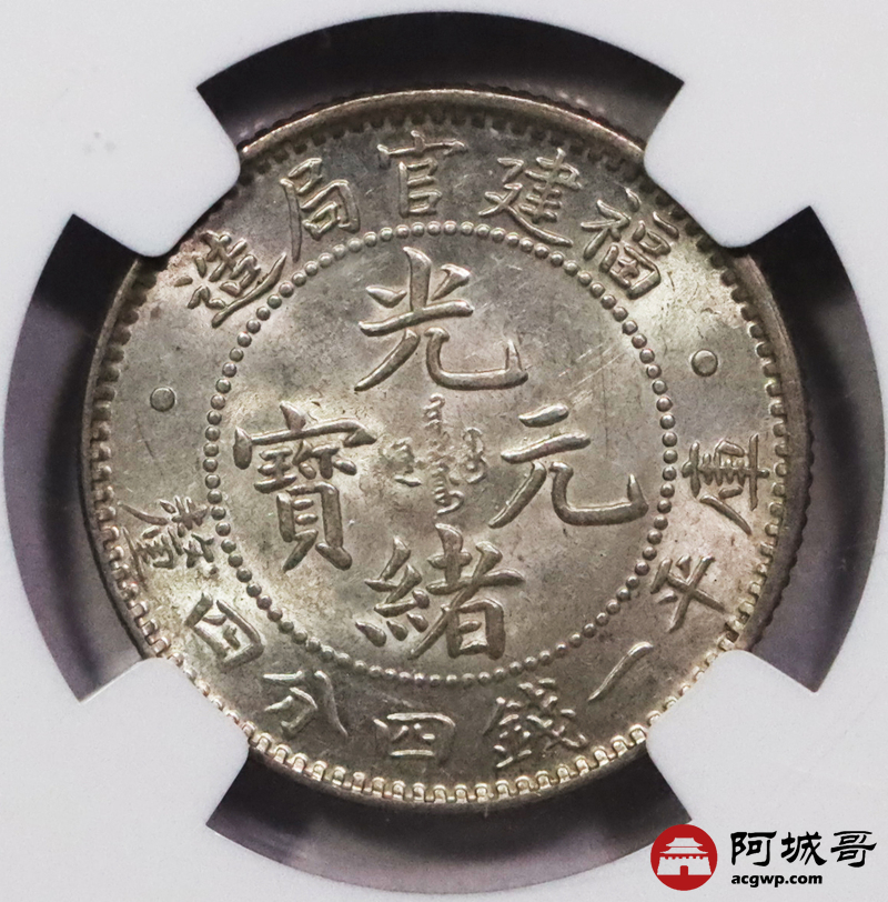 Lot:3588 1897-1903年福建官局造光绪元宝库平一钱四分四厘银币一枚,底板深打,光度极佳 NGC MS63 评级编号:2789640-003