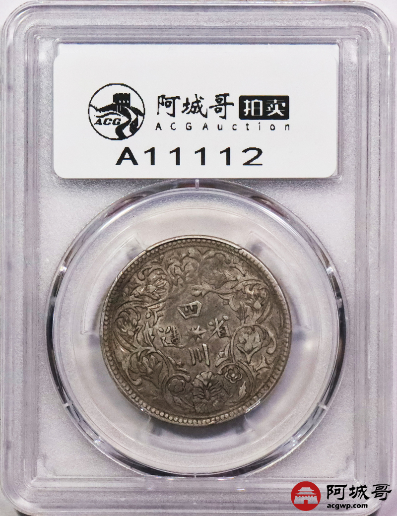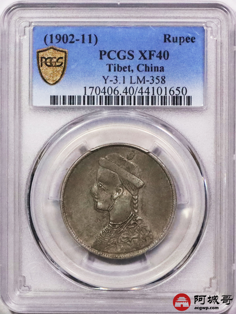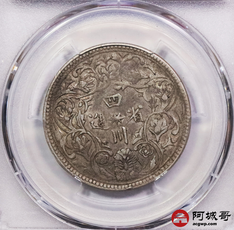 Lot:3584 1902-11四川省造光绪一期卢比银币一枚,无领横花,原味包浆 PCGS XF40 评级编号:44101650