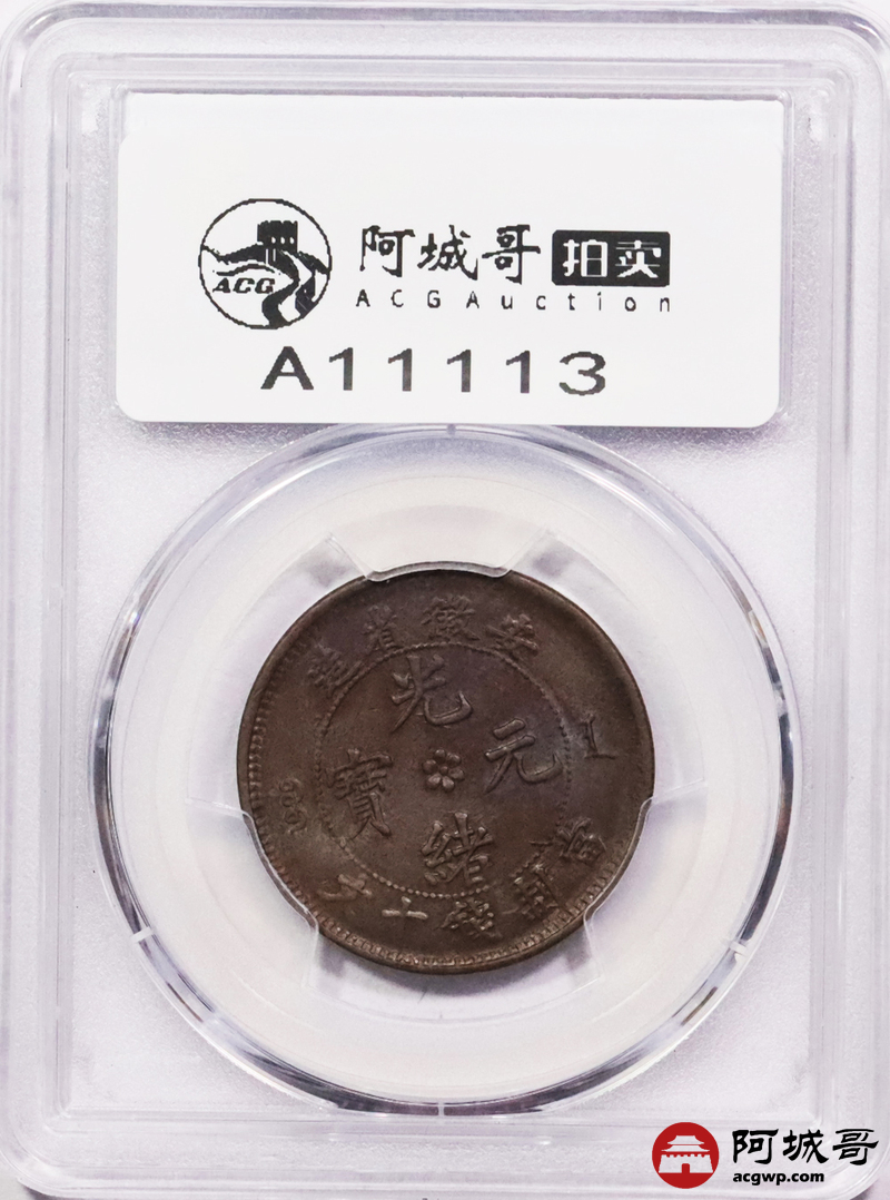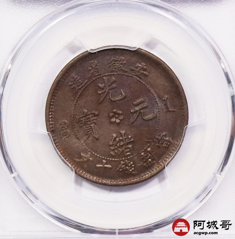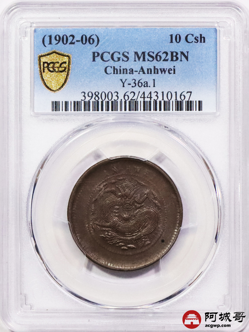 Lot:3356 1902-06安徽省造光绪元宝当制钱铜币十文一枚 PCGS MS62BN 评级编号:44310167
