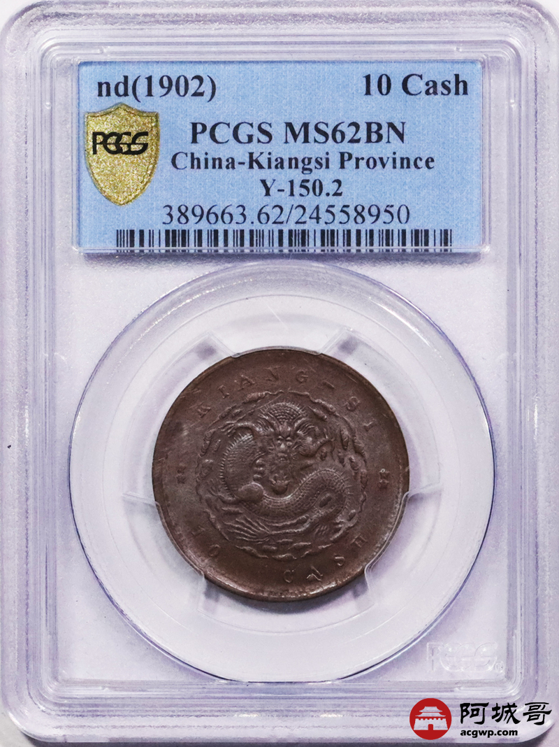Lot:3355 1902江西省造光绪元宝当十铜币一枚,铜光四溢 PCGS MS62BN
