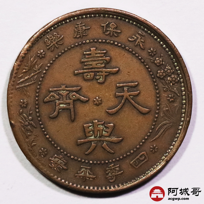 Lot:3784 民国时期代用币裸币一枚,背永保康乐 寿与天齐 四季平安