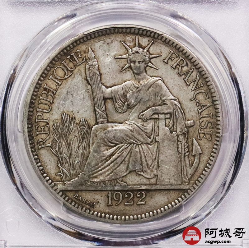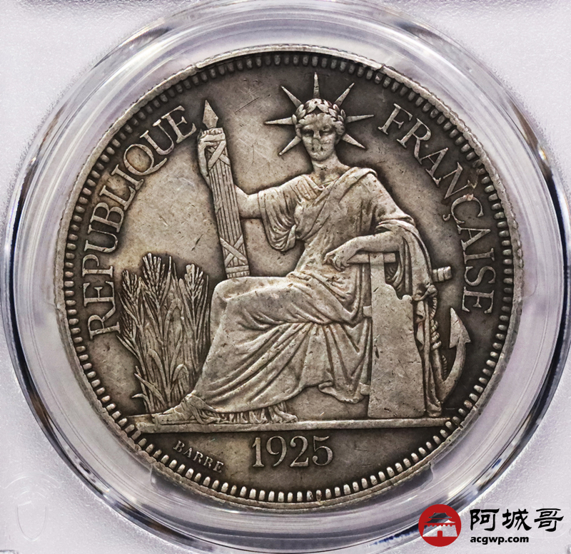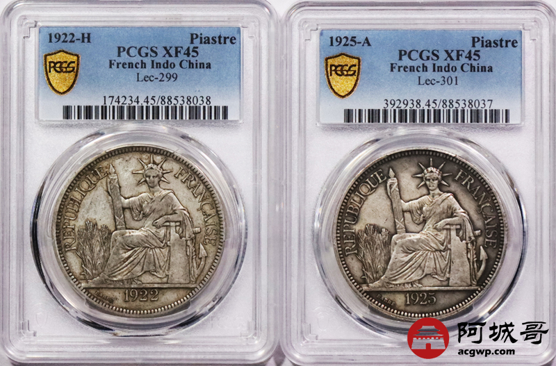 Lot:3757 1925A/1922H 法属印支银币坐洋两枚,原味 PCGS XF45 评级编号:88538037-88538038