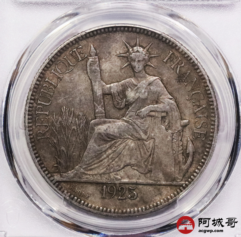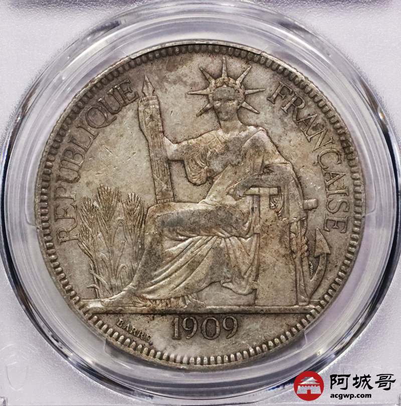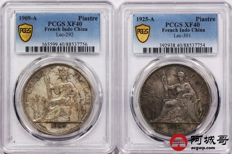 Lot:3759 1925A/1909A法属印支银币坐洋两枚,原味 PCGS XF40 评级编号:88537754-88537756