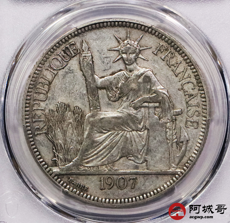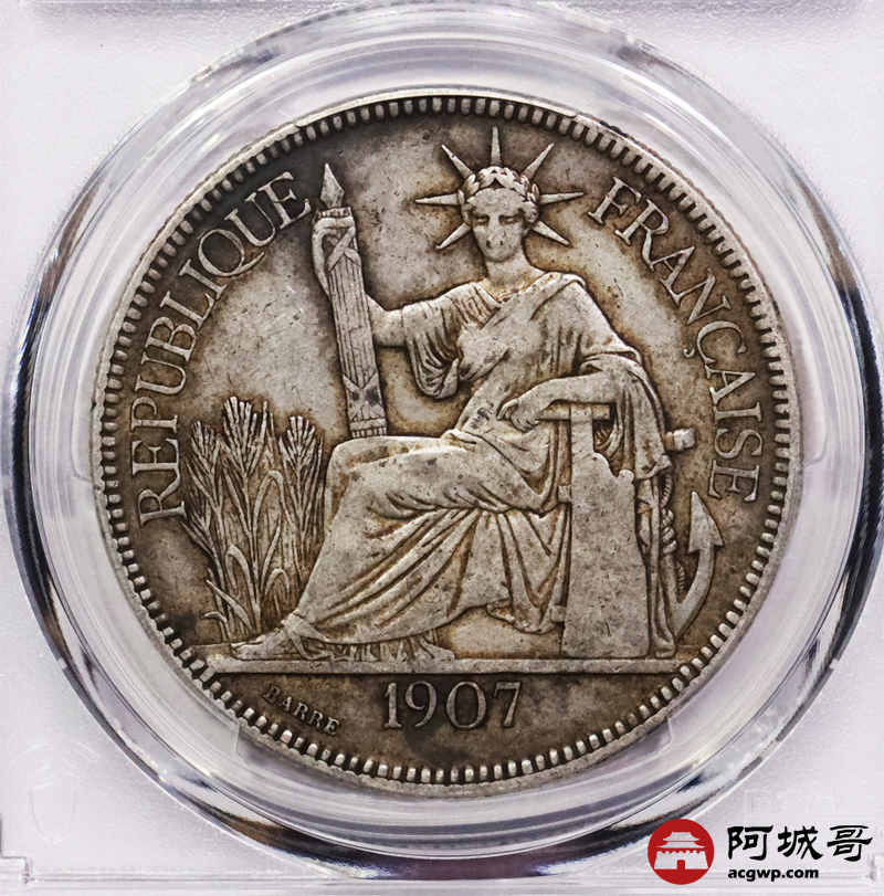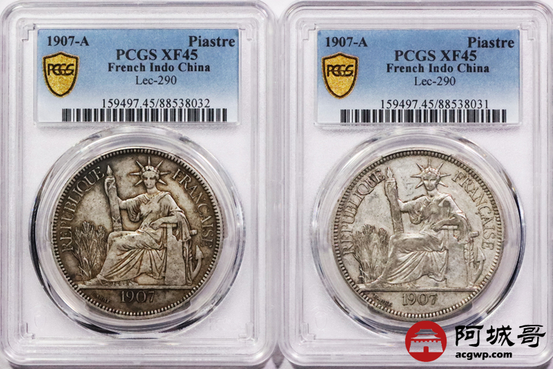 Lot:3750 1907A法属印支银币坐洋两枚,原味 PCGS XF45 评级编号:88538031-88538032