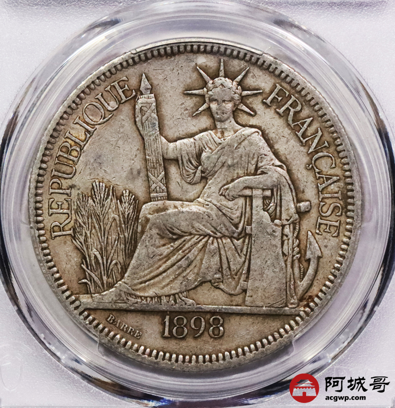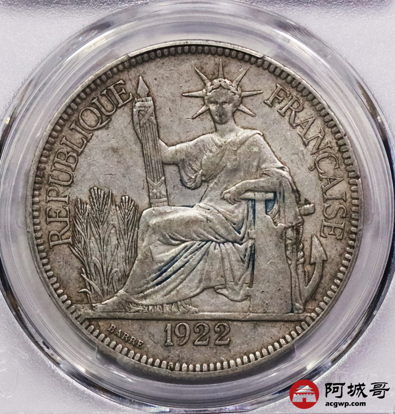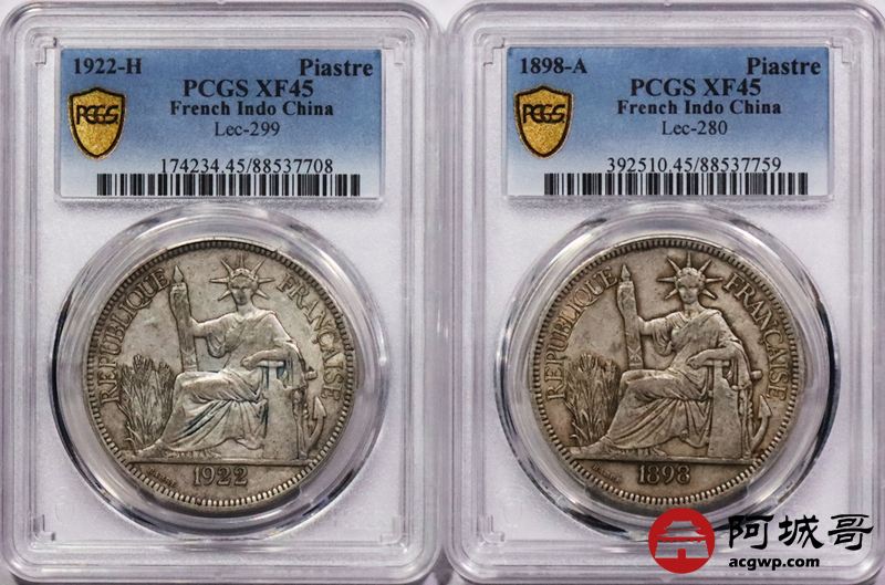 Lot:3752 1898A/1922H 法属印支银币坐洋两枚,原味 PCGS XF45 评级编号:88537759-88537708