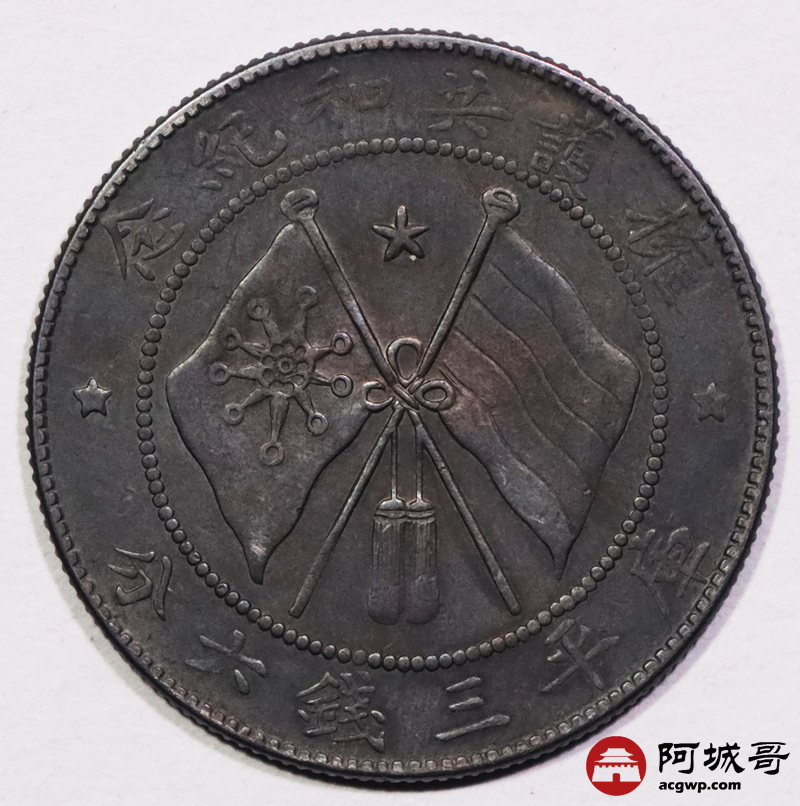 Lot:3781 唐继尧像拥护共和纪念银币一枚,酱彩包浆