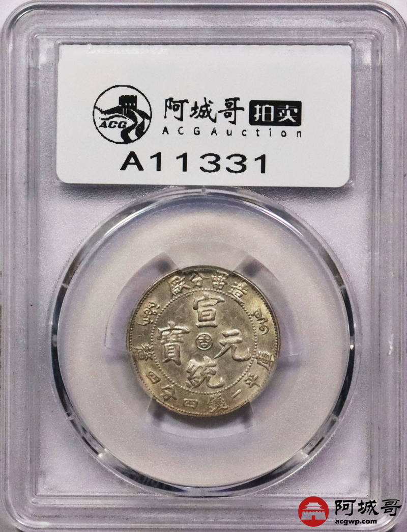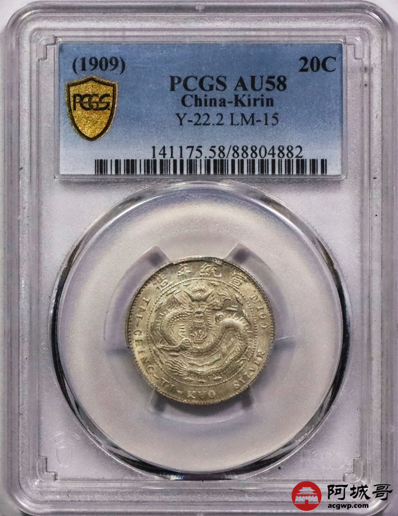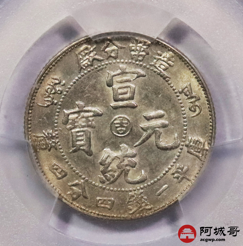 Lot:3033 1909宣统年造币分厂宣统元宝库平一钱四分四厘银币一枚,中心吉PCGS AU58评级编号:88804882