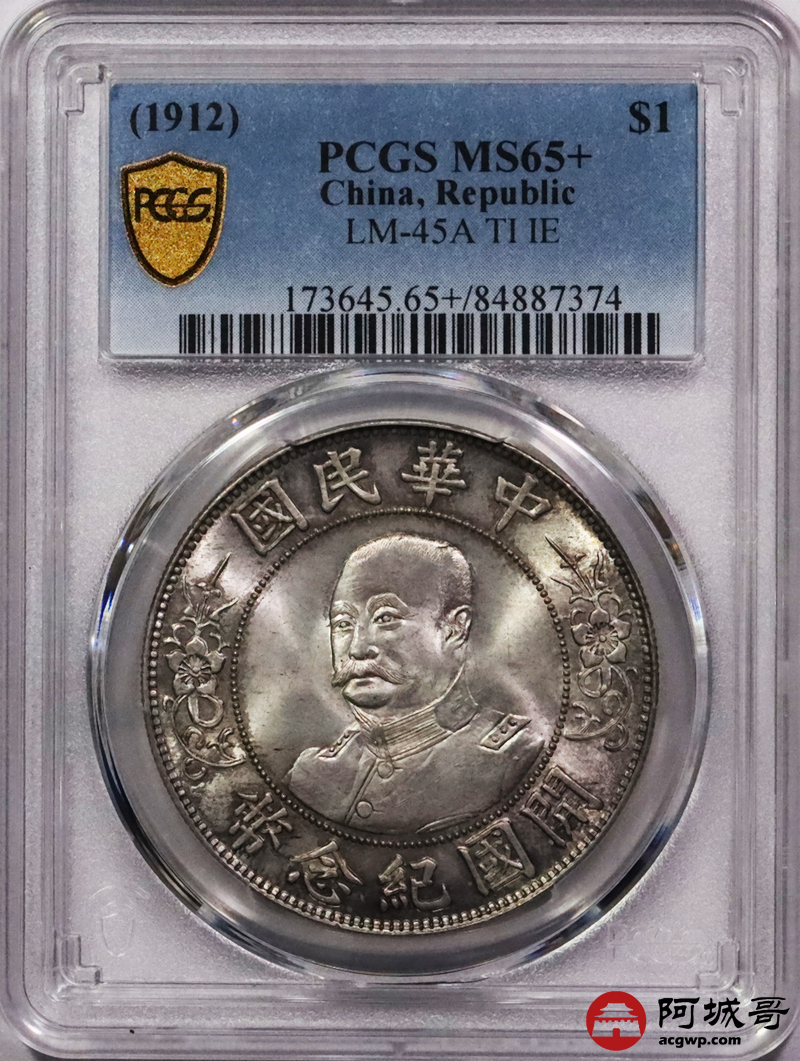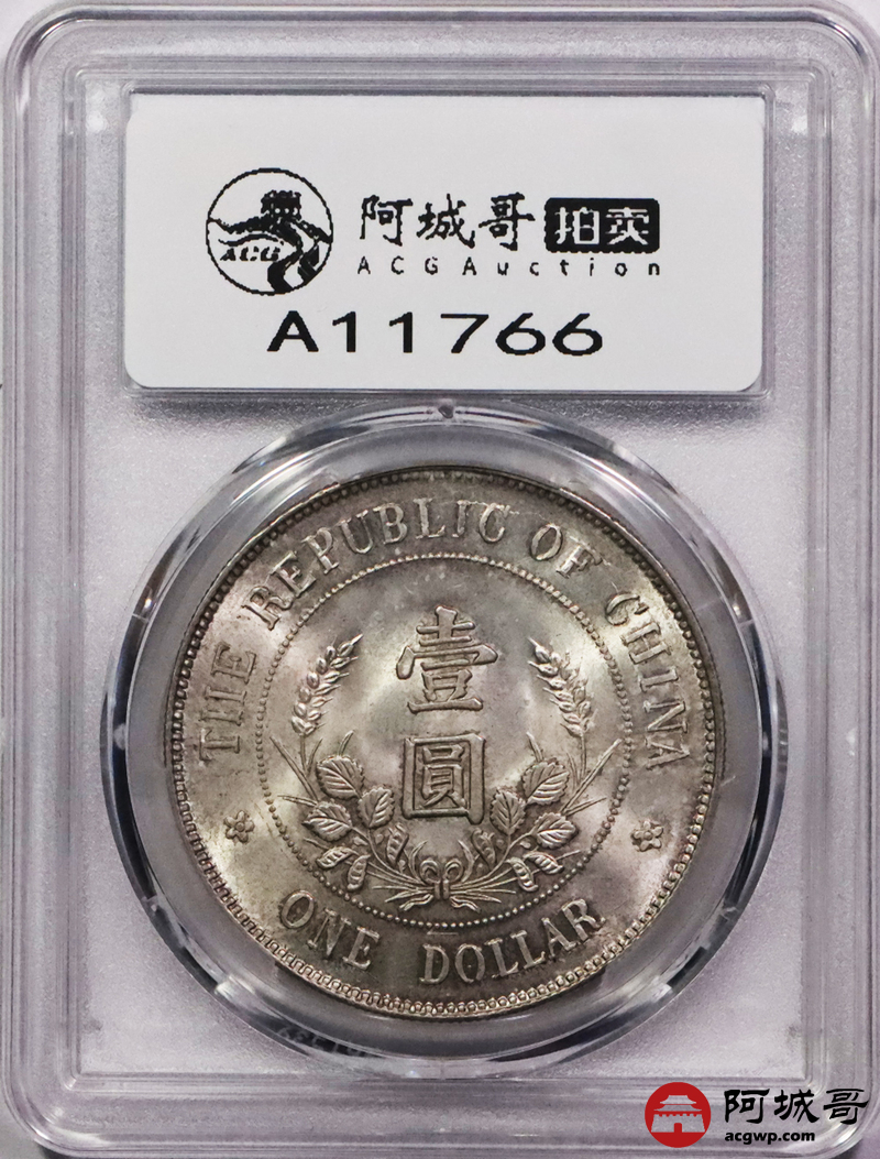 Lot:3093 1912黎元洪像无帽开国纪念壹圆银币一枚,“H无横”铸打深俊,淡灰色彩浆底板,柔光四溢,状态一流 亚军分 PCGS MS65+