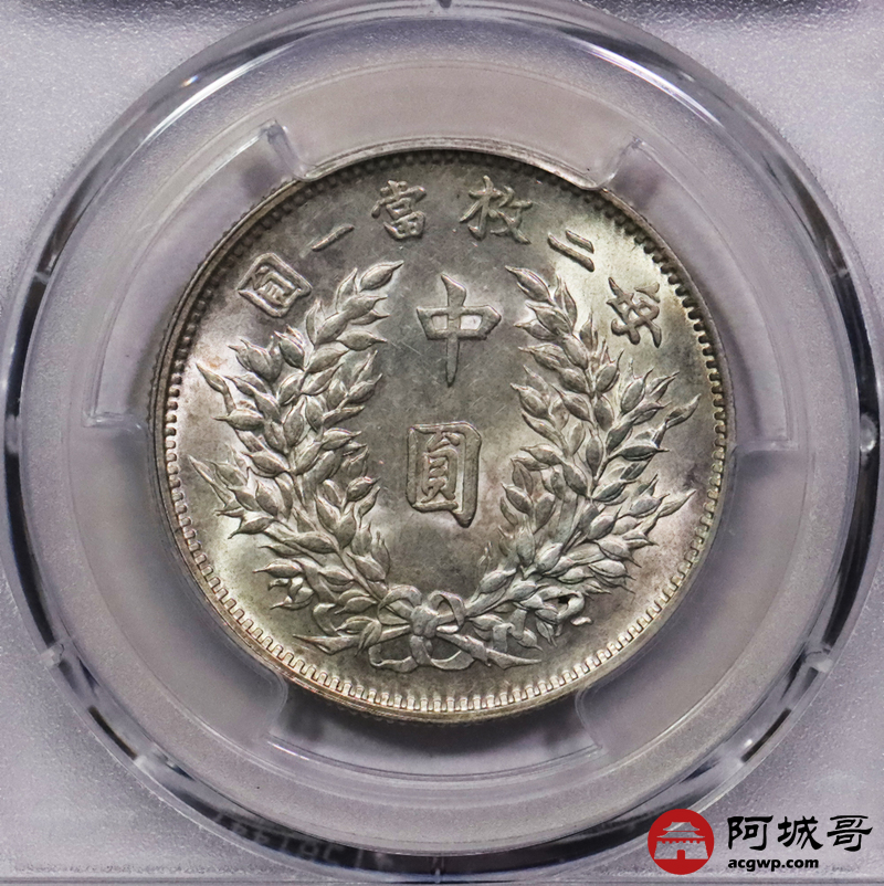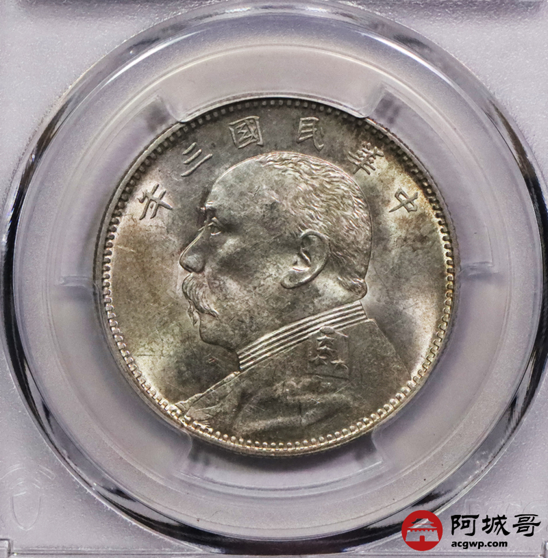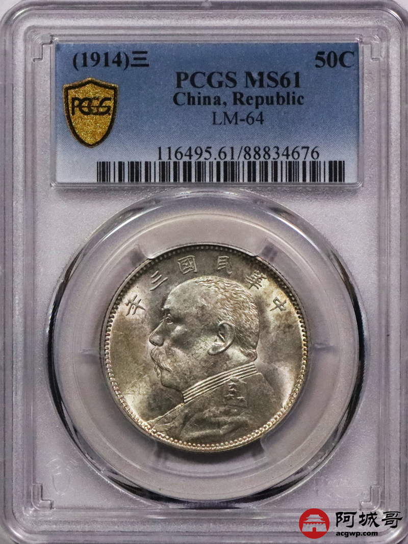 Lot:3130 1914民国三年袁世凯像中圆银币一枚,深打黄油底板 PCGS MS61 评级编号:88834676