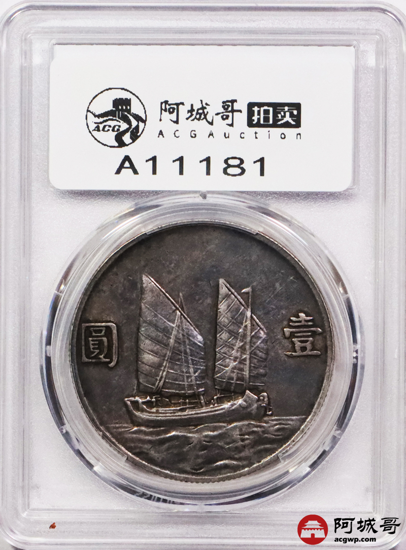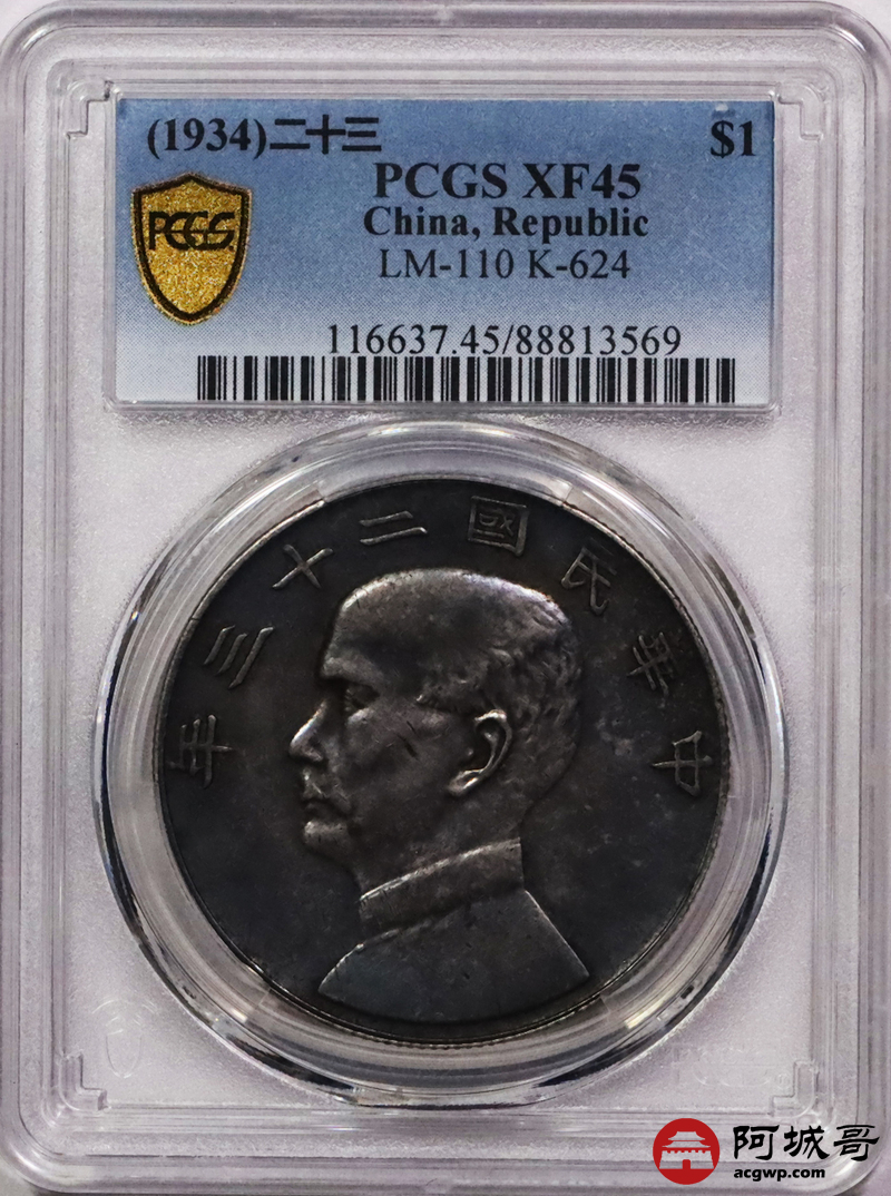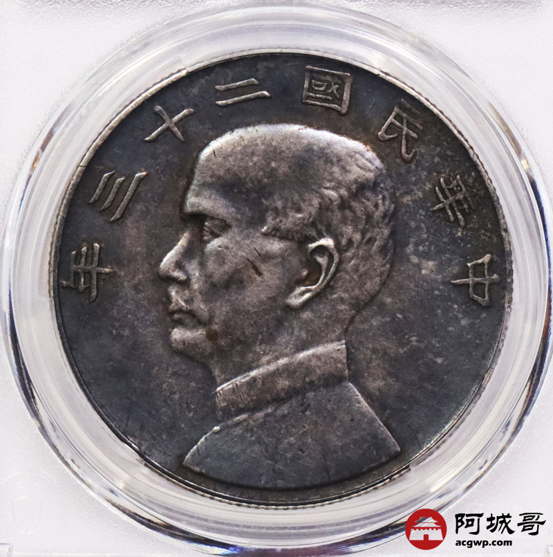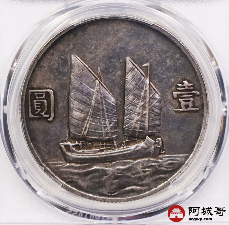 Lot:3577 1934民国二十三年孙中山像背帆船壹圆银币一枚,浓郁酱黑彩浆 PCGS XF45 评级编号:88813569
