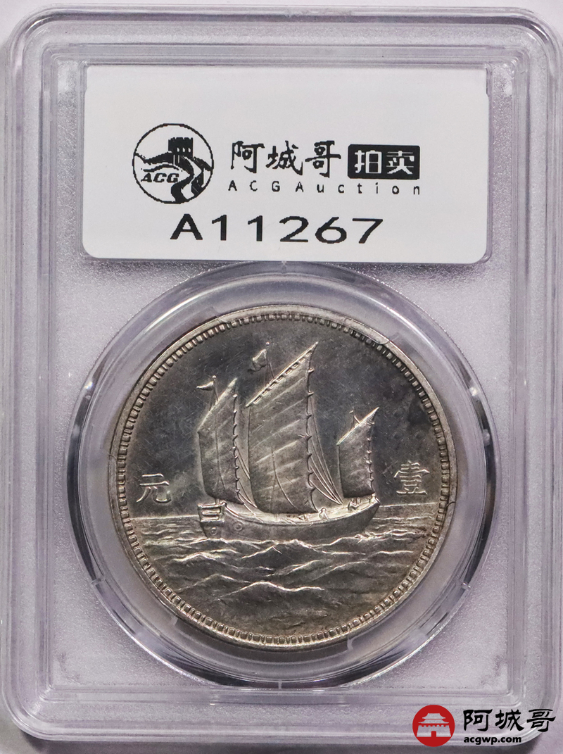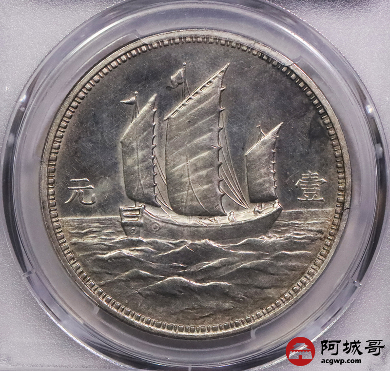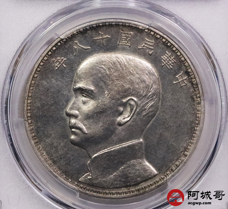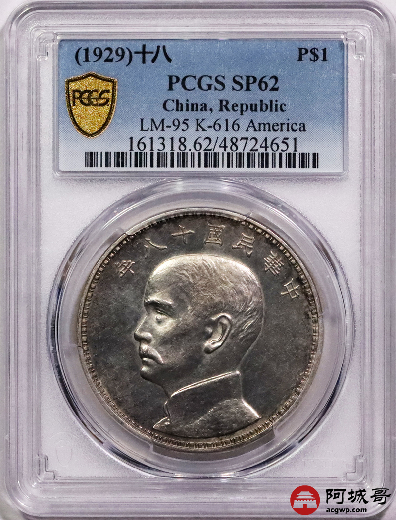 Lot:3179 1929民国十八年美国版孙中山像背三帆船壹圆银质样币一枚,打模深峻,版底细腻,品相极为难得,PCGS SP62评级编号:48724651