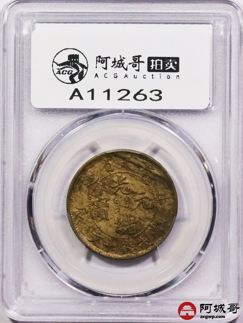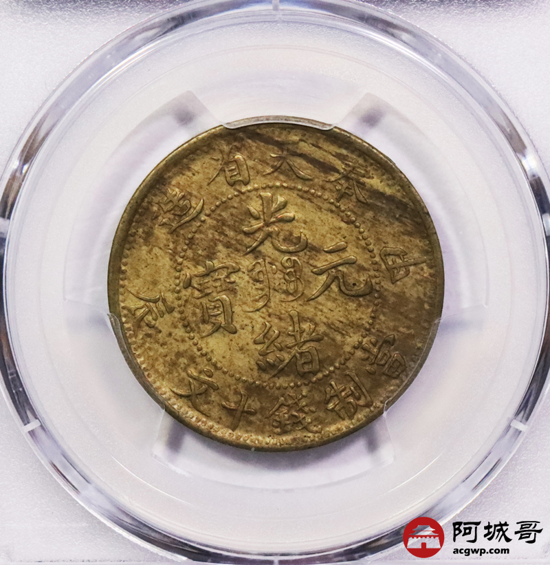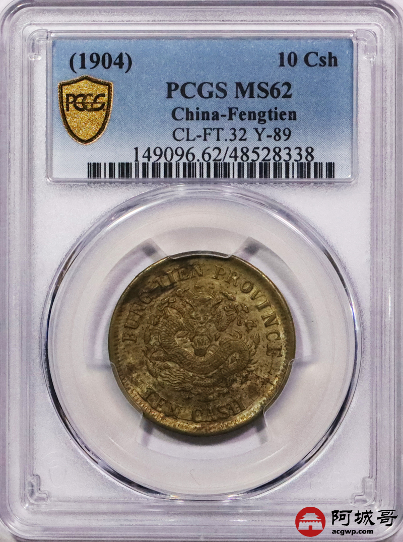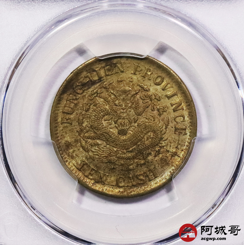 Lot:3358 1904甲辰年奉天省造光绪元宝当制钱十文铜币一枚,原光底板 PCGS MS62
