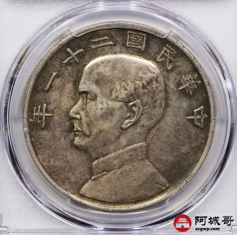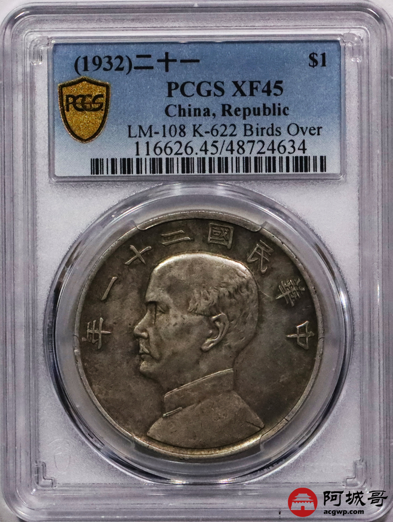 Lot:3193 1932民国二十一年孙中山像背三鸟壹圆银币一枚,原汁原味PCGS XF45评级编号:48724634