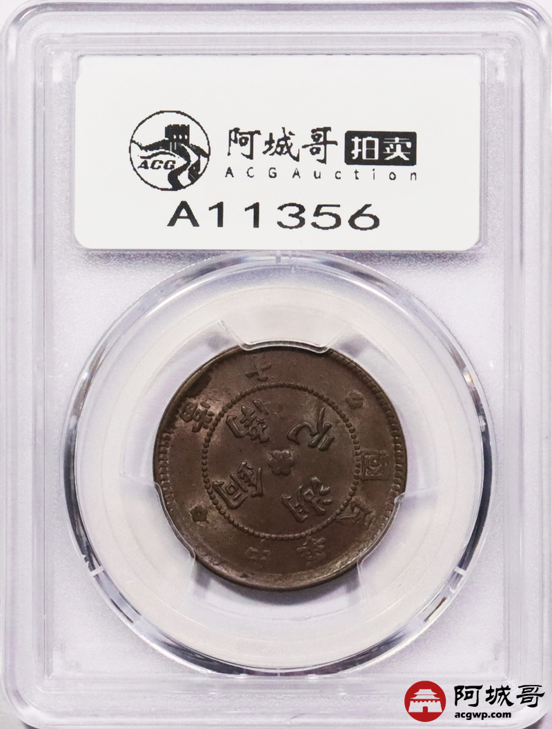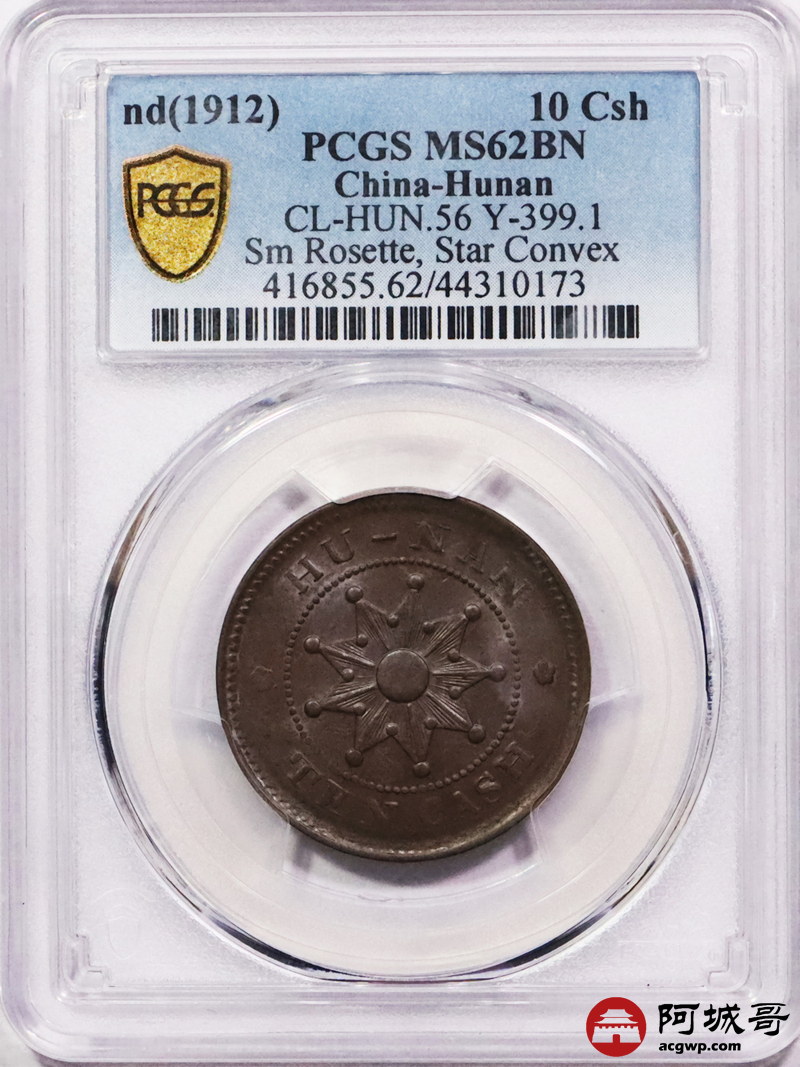 Lot:3643 1912中华民国铜元当十一枚,底板润泽,光度十足 PCGS MS62BN