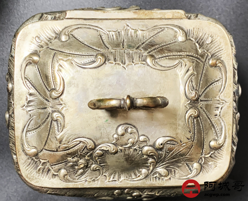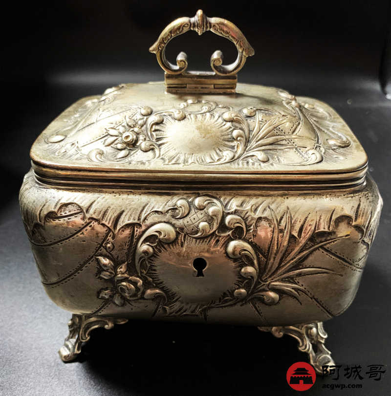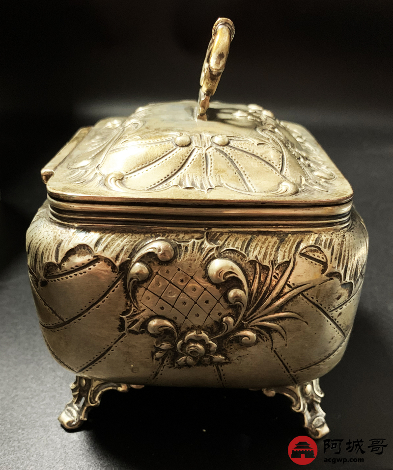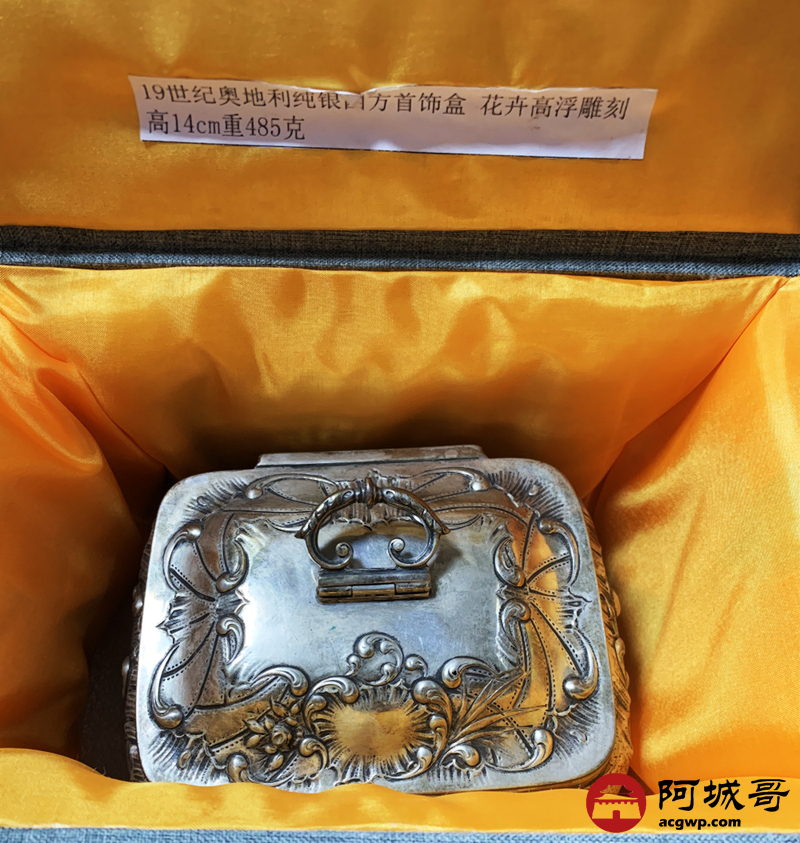 Lot:3855 19世纪奥地利花卉高浮雕雕刻刻银四方收藏盒,高14CM,重485克