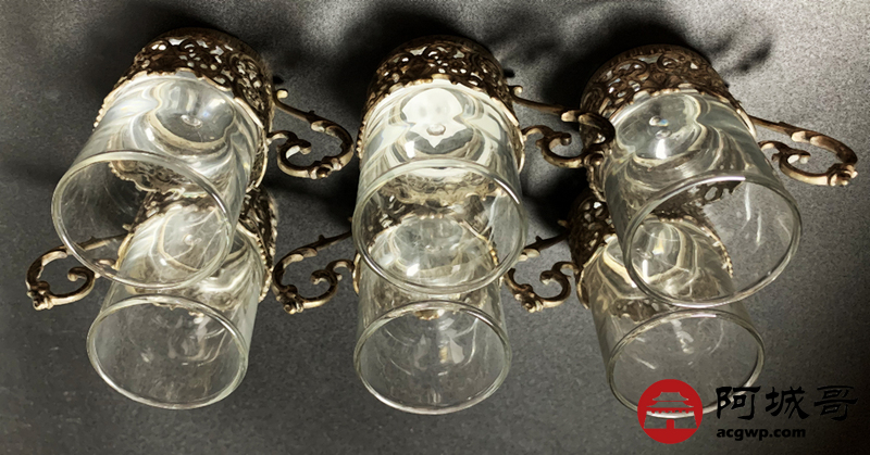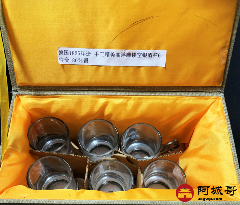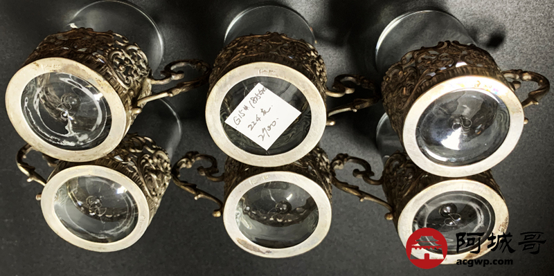 Lot:3828 德国1825年酒杯6件套(80%银手工精美高浮雕留空银杯托)重224克
