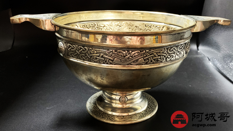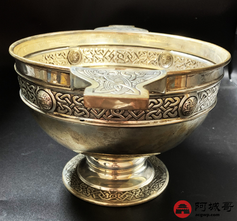 Lot:3809 英国带座双柄大碗(盆)1935年伯民翰官方银标识重677克