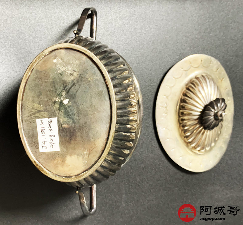 Lot:3808 英国纯银刻花手工双耳杯1891年谢菲尔德官方银标识重272克