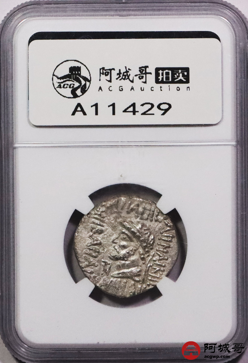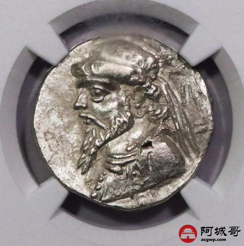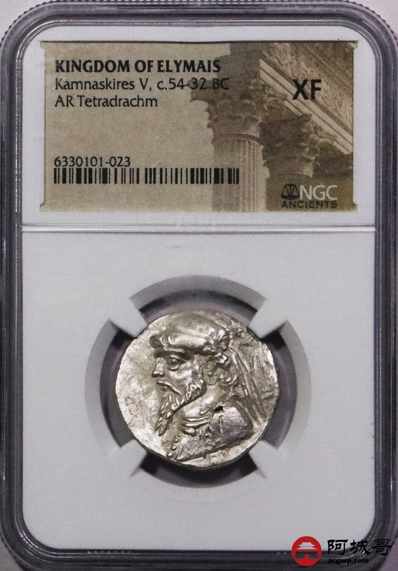 Lot:3716 埃兰王国kamnaskires v4德银币 公元前54—前32年发行 直径:25nmm 面值:4德拉克马 正面:头系发带的国王kamnaskires v半身像 反面:国王头像 NGC XF评级编号:6330101-023