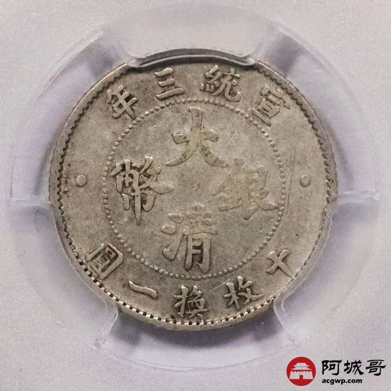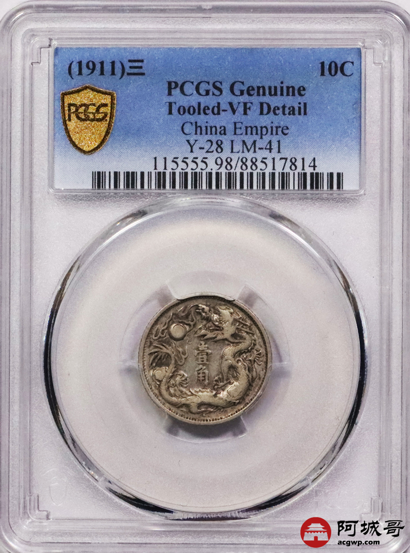 Lot:3065 1911宣统三年大清壹角银币一枚,原味包浆 PCGS VF
