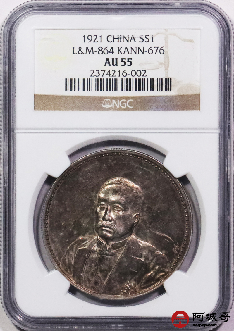 Lot:3158 1921民国十年九月徐世昌像仁寿同登纪念壹圆银币一枚,铸打精美深俊,浓郁酱红色包浆,味道极佳NGC AU55评级编号:2374216-002