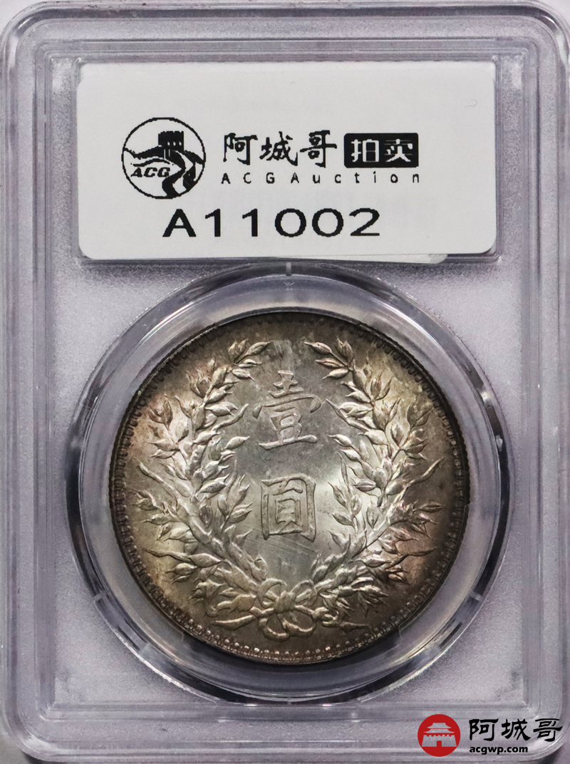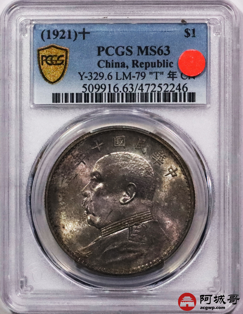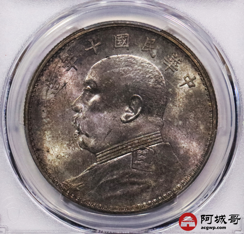 Lot:3146 1921民国十年袁世凯像壹圆银币一枚,“T”点年五彩包浆PCGS MS63评级编号:47252246