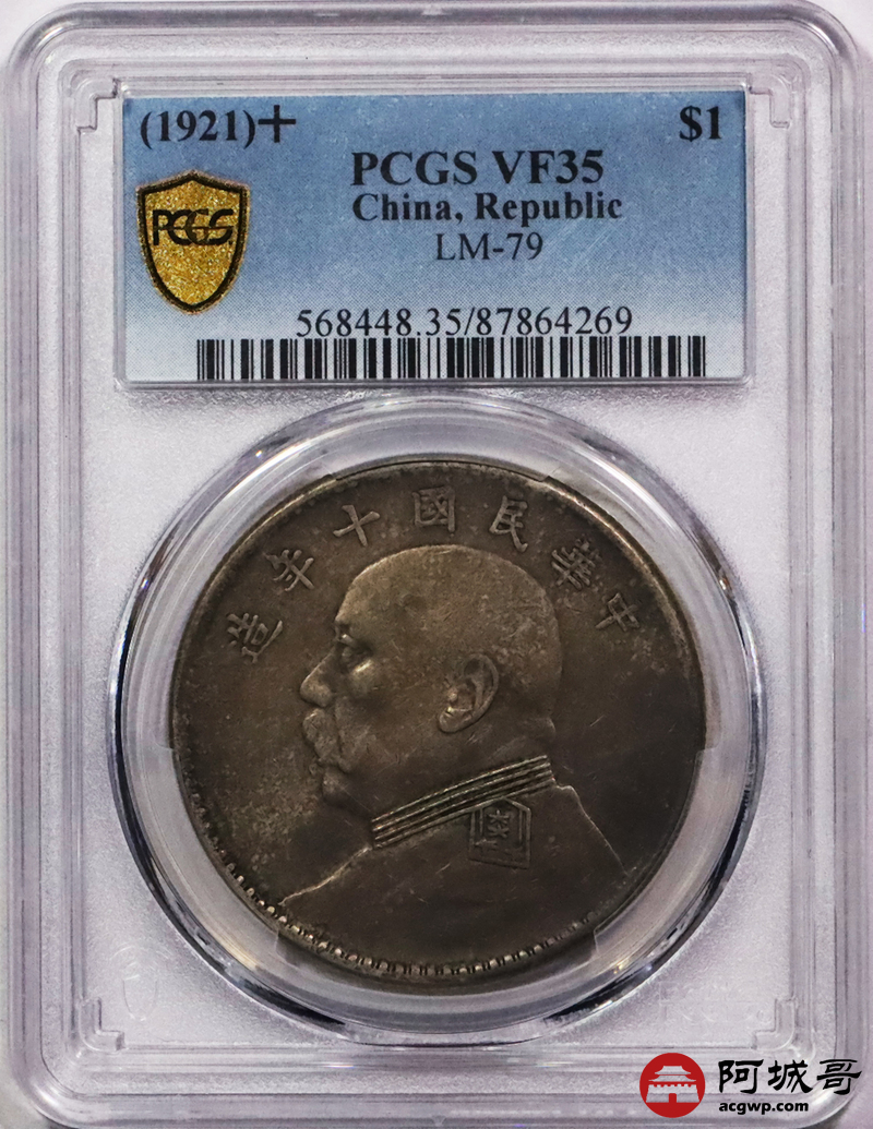 Lot:3534 1921民国十年袁世凯像壹圆银币一枚,五彩包浆PCGS VF35评级编号:87864269