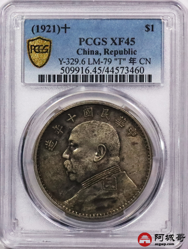 Lot:3532 1921民国十年袁世凯像壹圆银币一枚,“T”点年酱彩包浆PCGS XF45评级编号:44573460