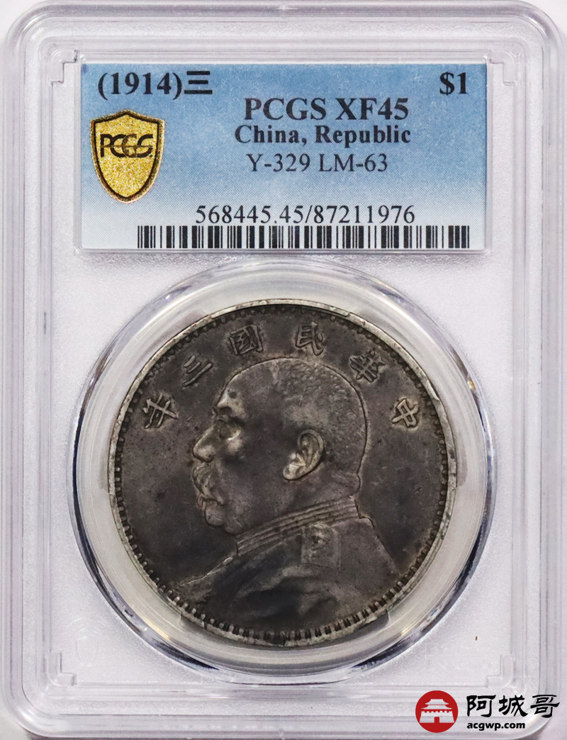 Lot:3506 1914民国三年袁世凯像壹圆银币一枚,原汁原味PCGS XF45评级编号:87211976