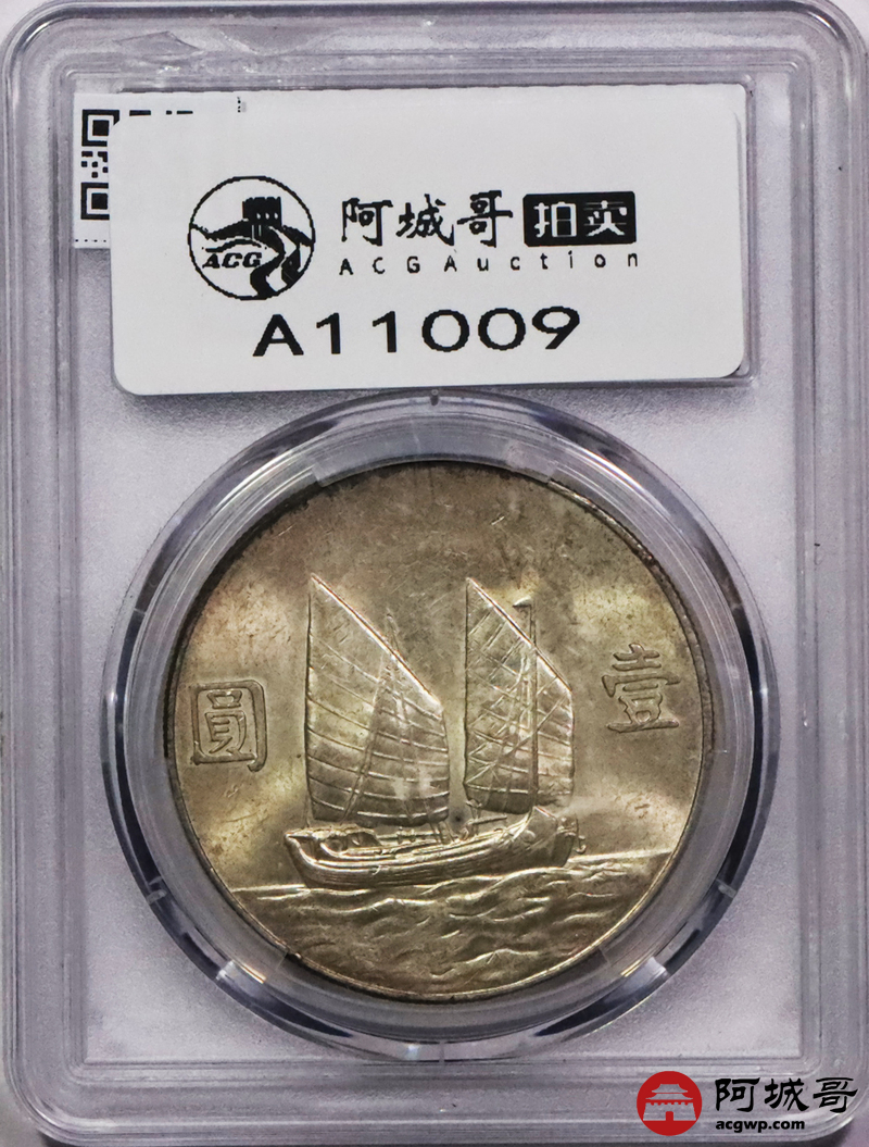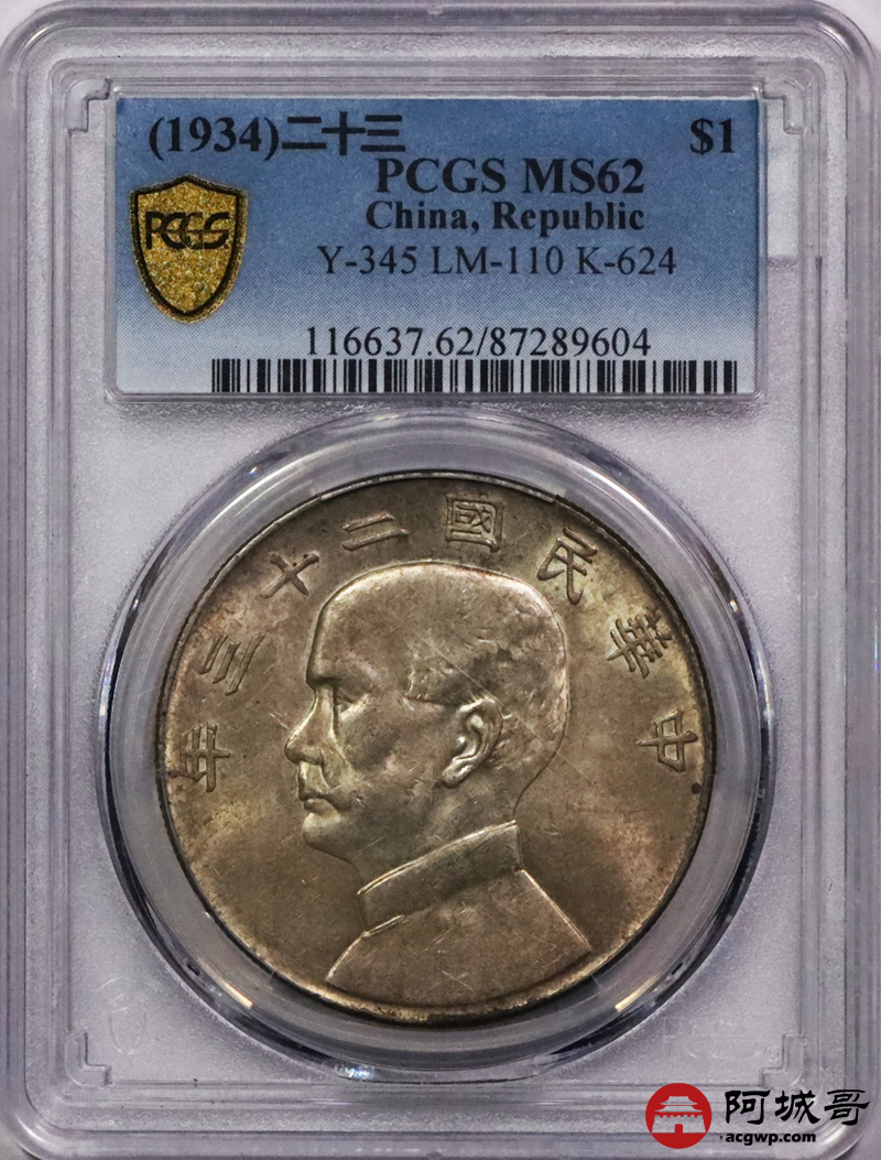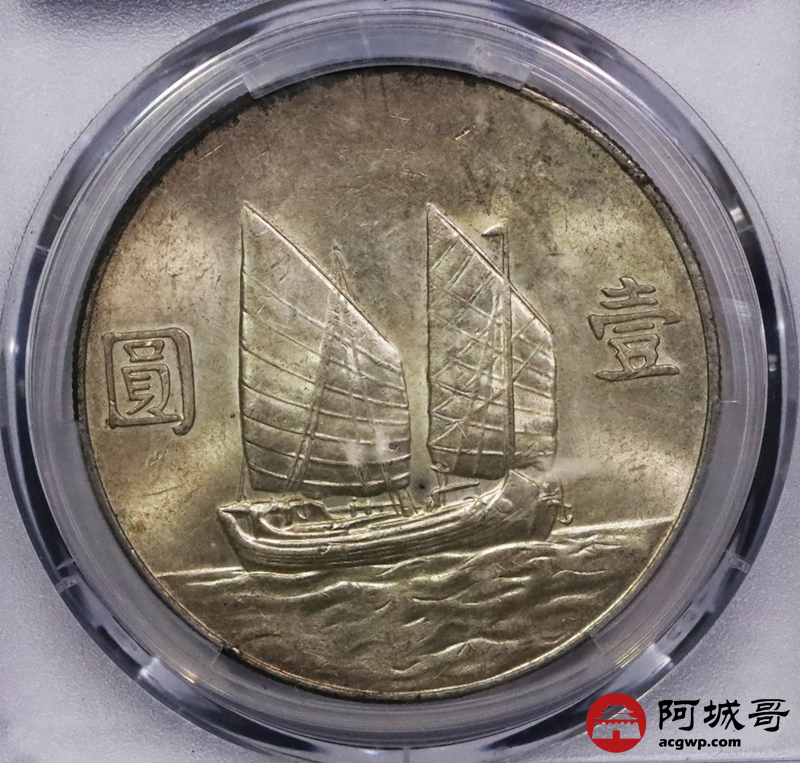 Lot:3571 1934民国二十三年孙中山像背帆船银币一枚,黄油转光PCGS MS62评级编号:87289604