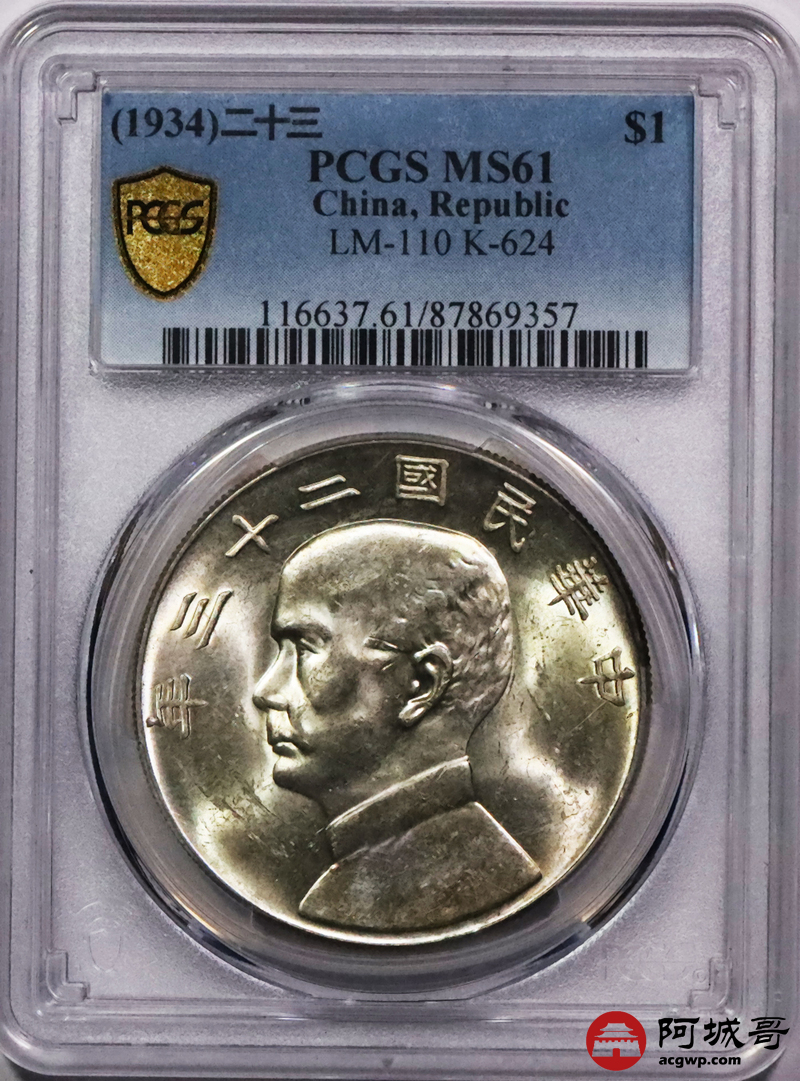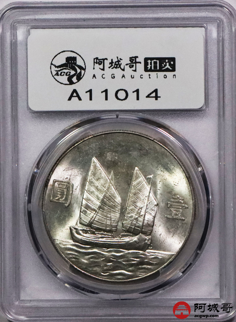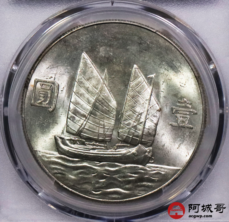 Lot:3573 1934民国二十三年船洋孙中山像背帆船银币一枚,黄油转光PCGS MS61评级编号:87839357