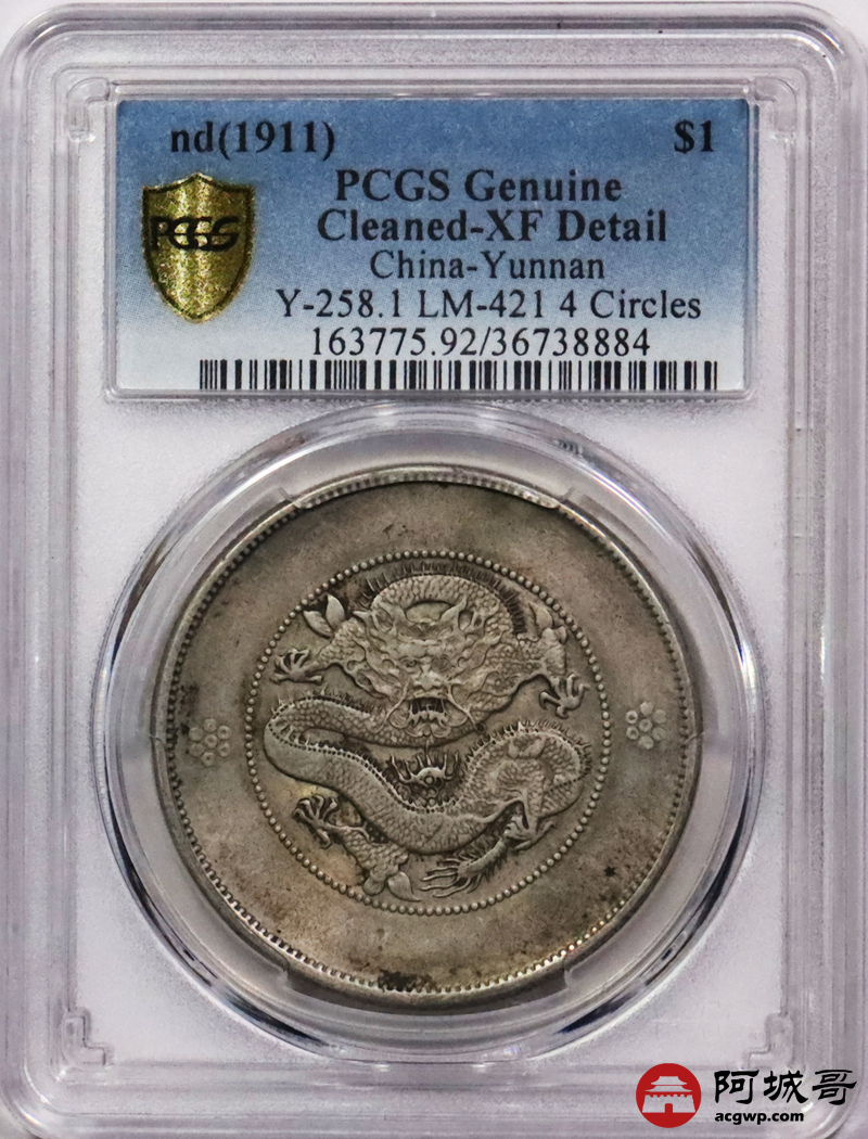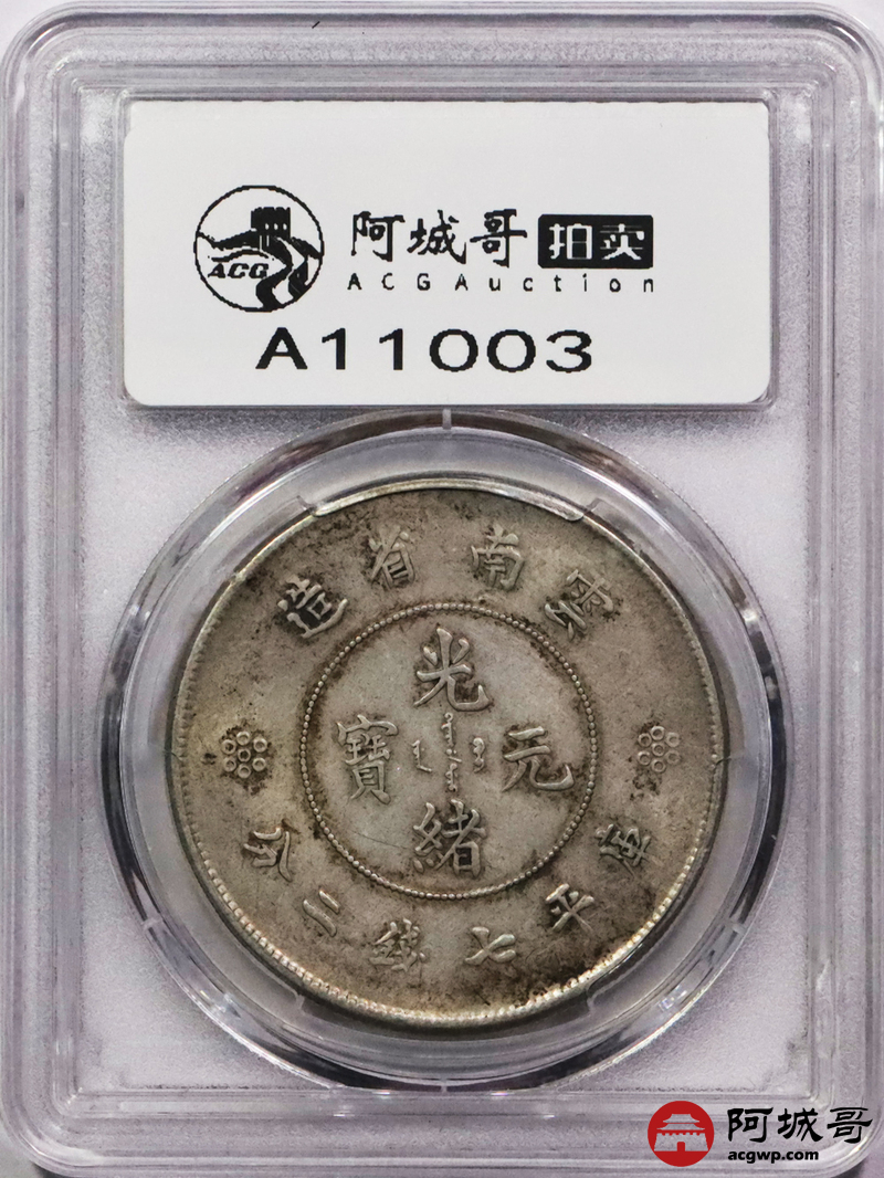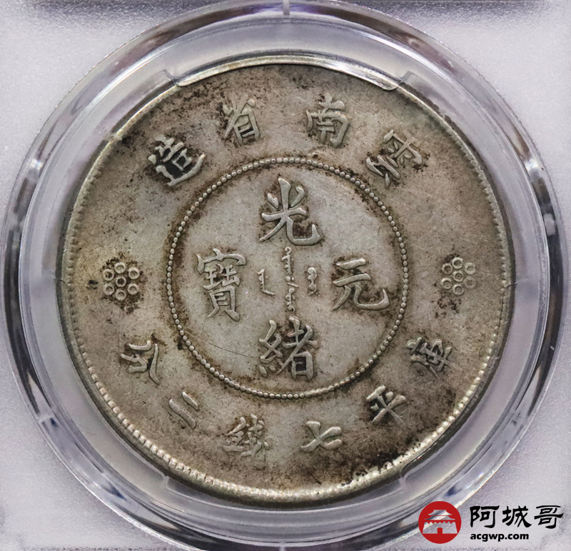 Lot:3419 1911云南省造光绪元宝库平七钱二分银币一枚,原汁原味PCGS XF评级编号:36738884