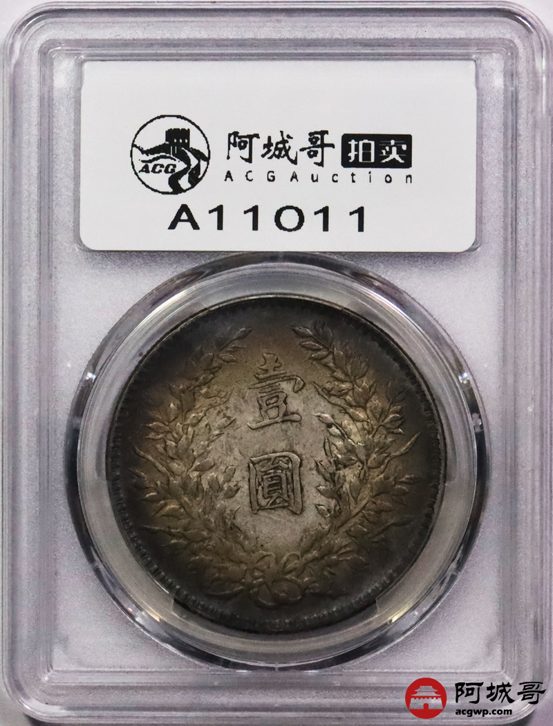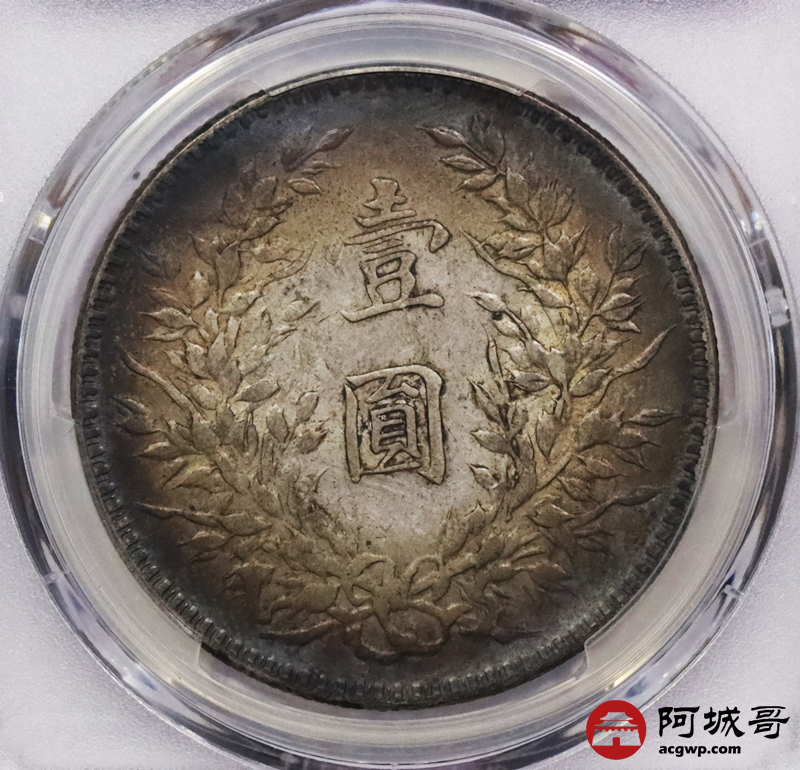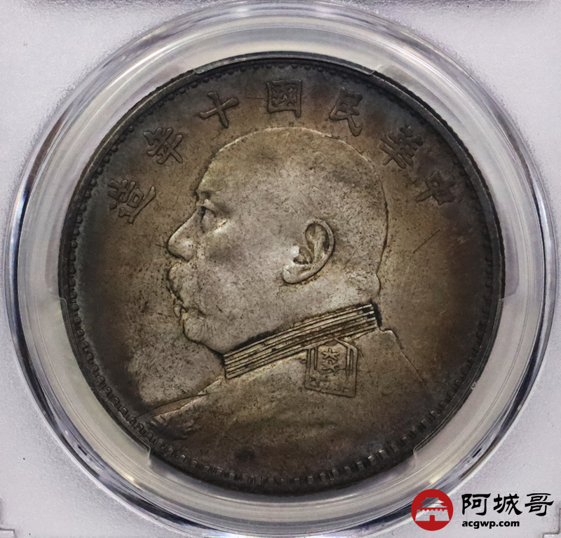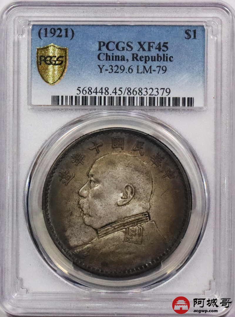 Lot:3531 1921民国十年袁世凯像壹圆银币一枚,酱彩老包浆CGS XF45评级编号:86832379