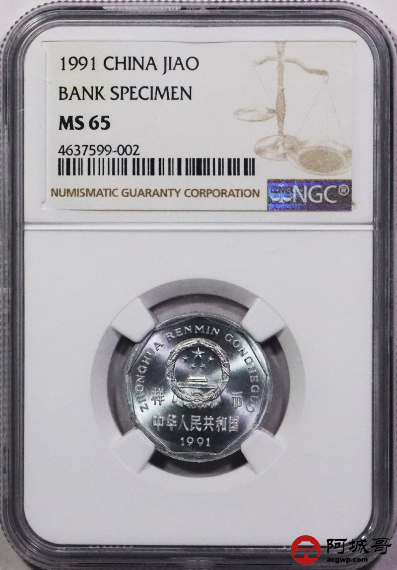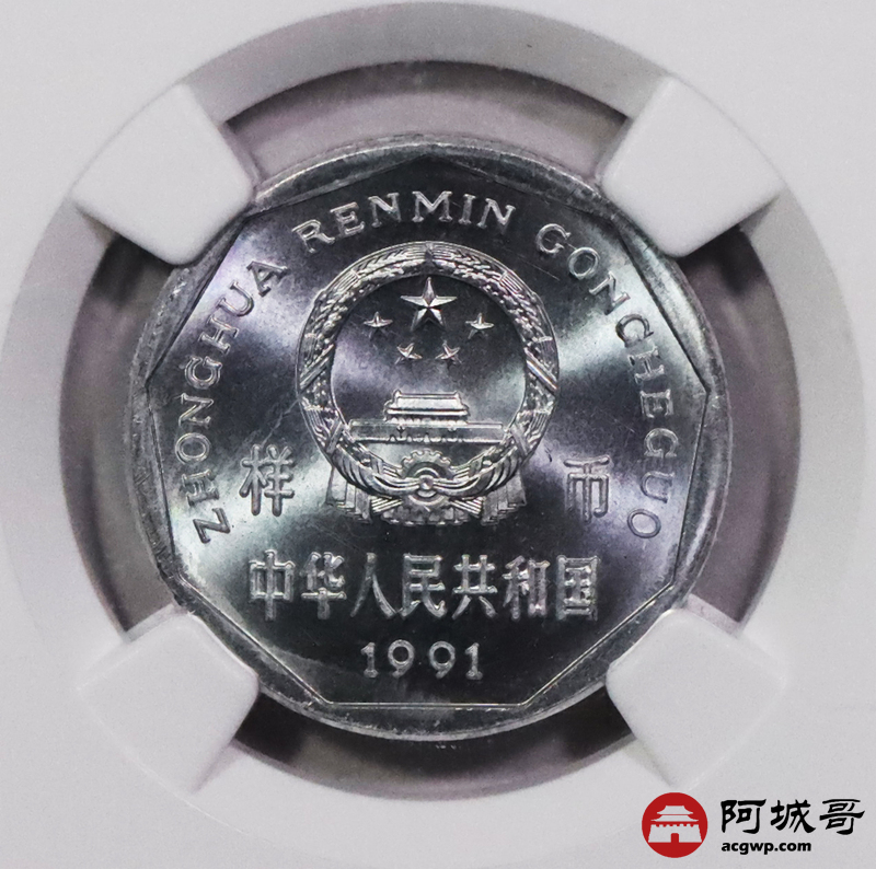 Lot:3730 1991年中华人民共和国菊花壹角铝质样币一枚 NGC MS65 评级编号:4637599-002
