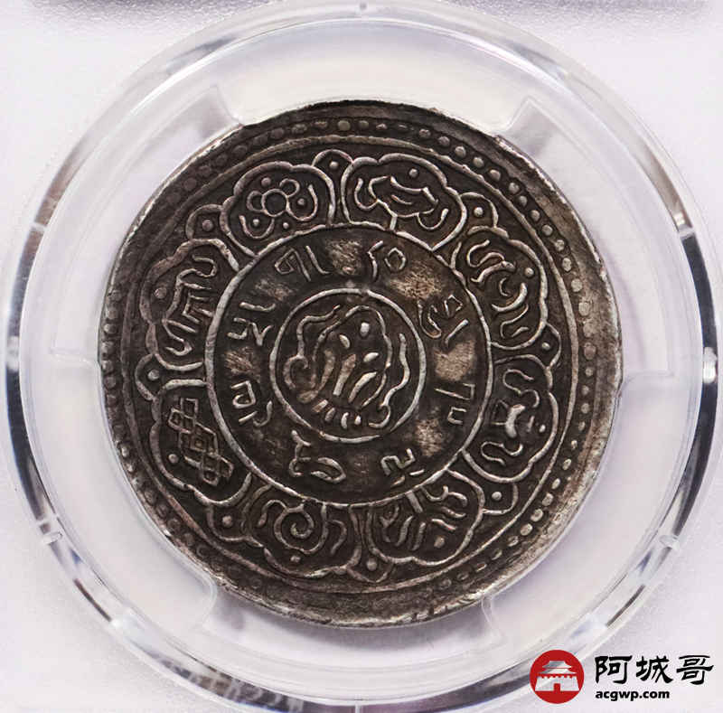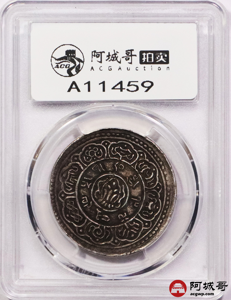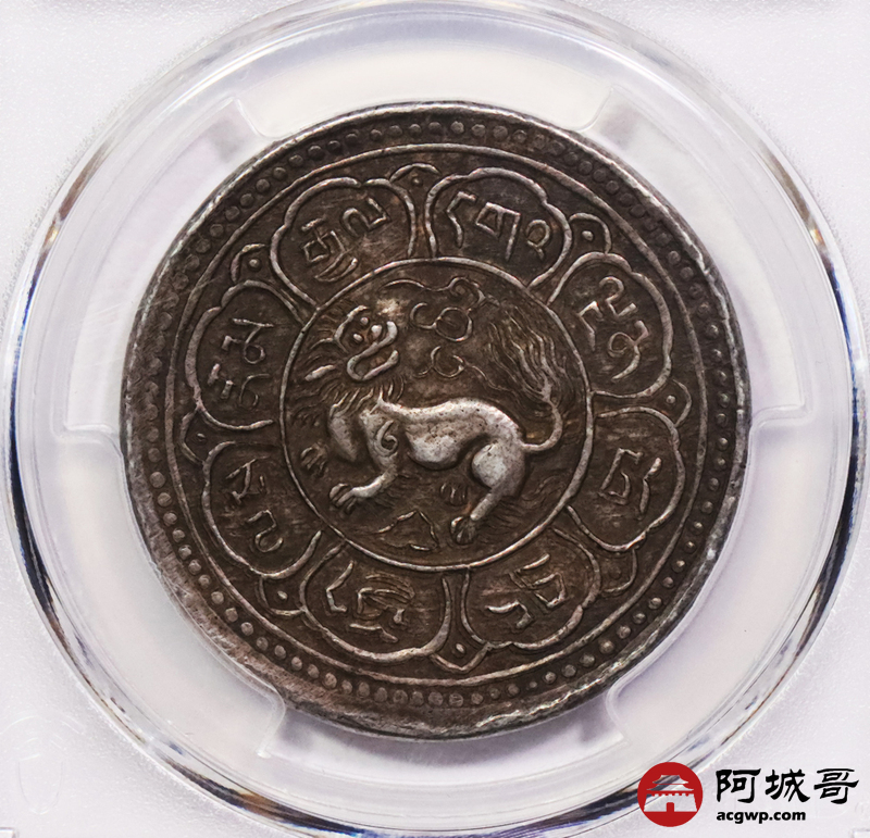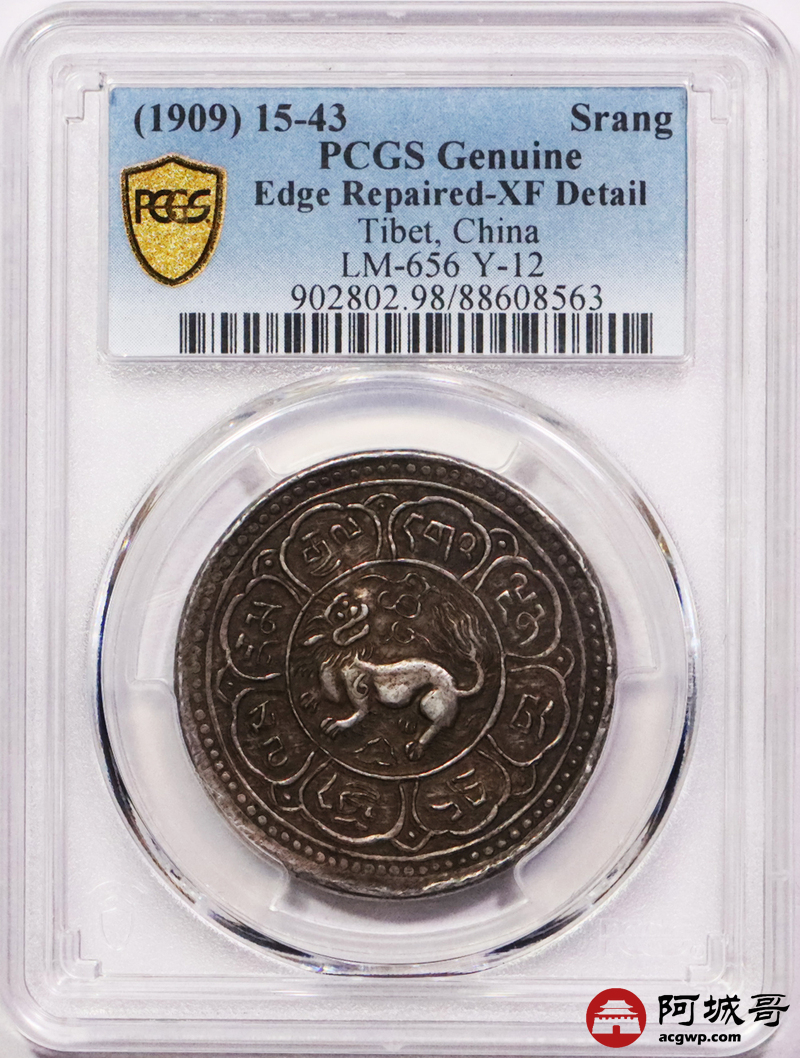 Lot:3459 1909/15-43西藏宣统大狮子桑康果木一两银币一枚,原味黑包浆 PCGS XF 评级编号:88608563