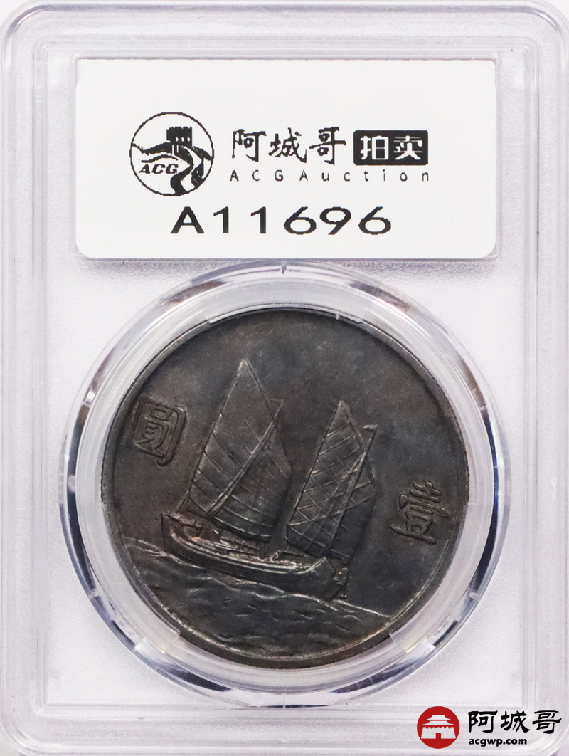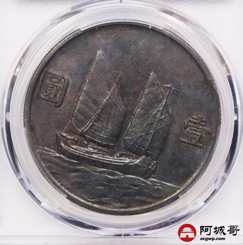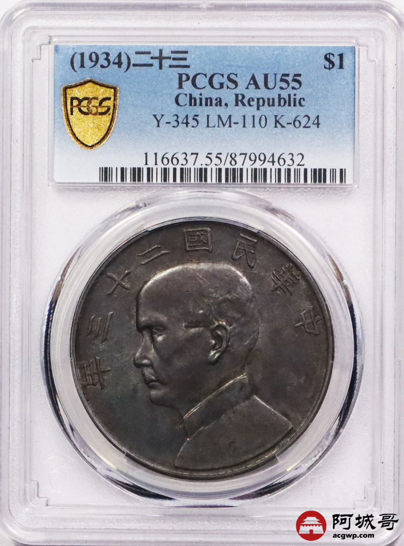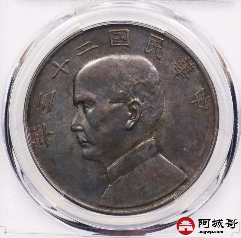 Lot:3576 1934民国二十三年孙中山像壹圆银币一枚,深打双面黑彩浆 PCGS AU55 评级编号:87994632