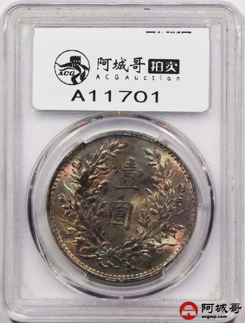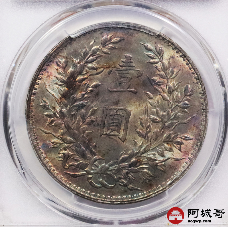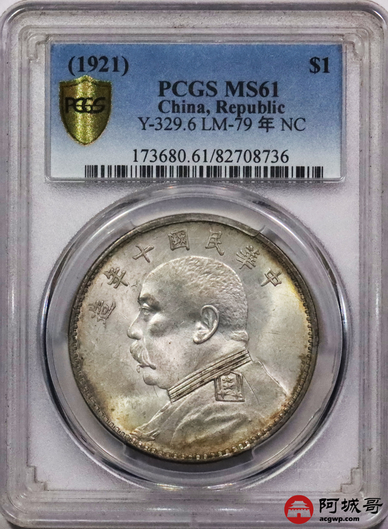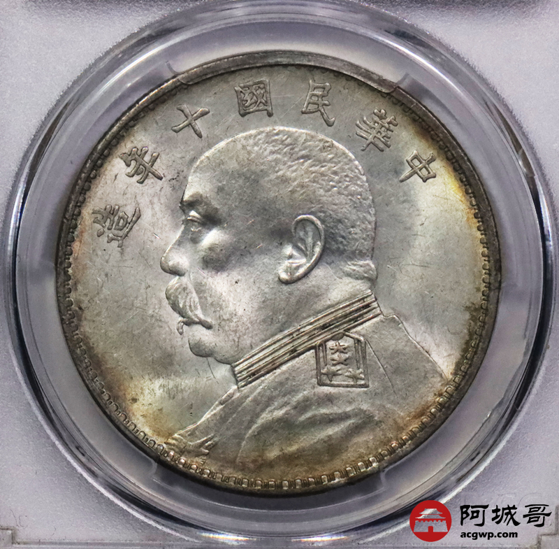 Lot:3529 1921民国十年袁世凯像壹圆银币一枚,黄油转光,卷尾五彩包浆 PCGS MS61评级编号:82708736