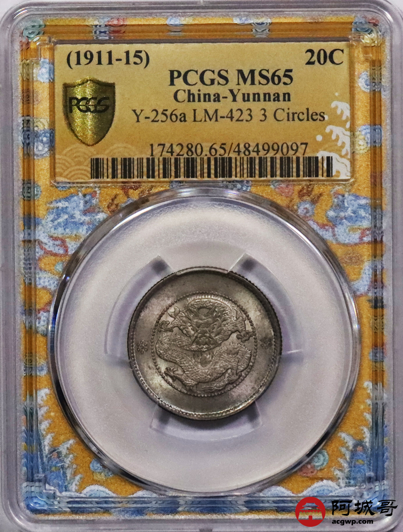 Lot:null 淡彩原光 云南困龙一钱四分四厘 PCGS MS65亚军分